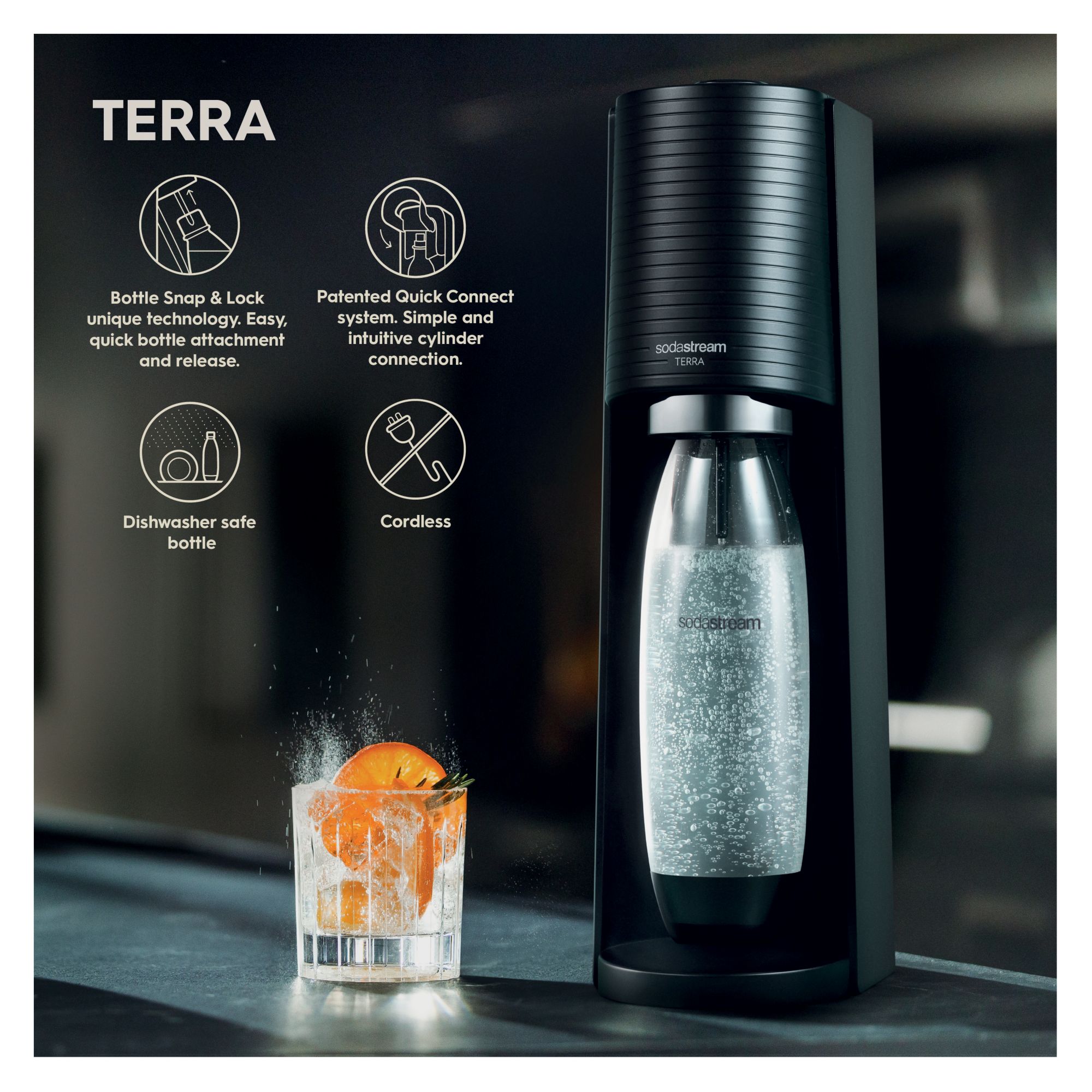 SodaStream Limited-Edition Terra Sparkling Water Maker Starter Kit with Extra CQC Cylinder- Black