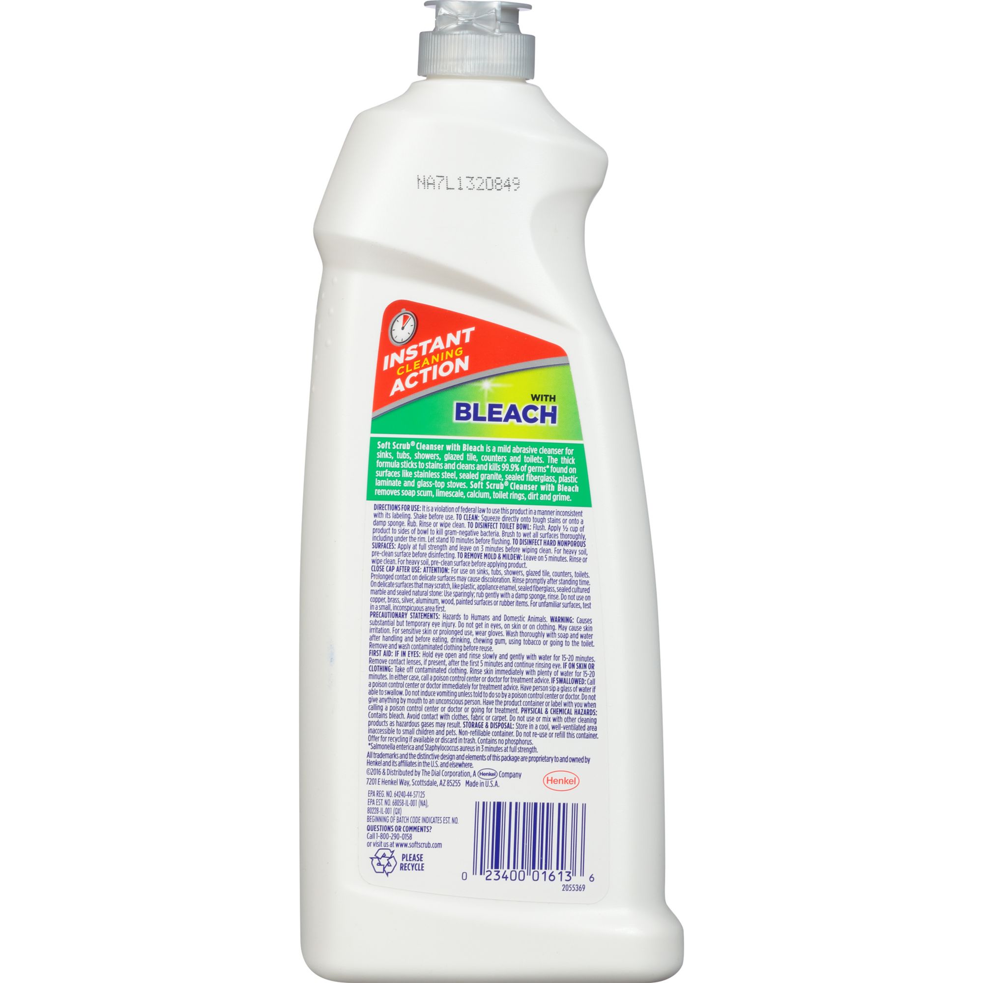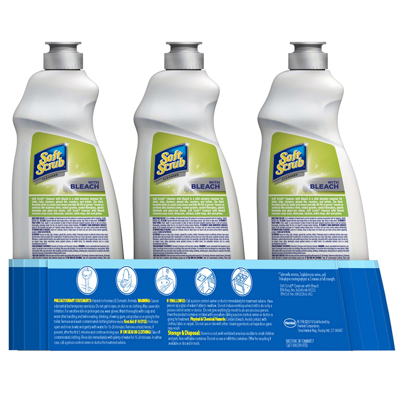 Soft Scrub with Bleach Cleanser cleans and starts disinfecting on contact, killing 99.9% of household germs. This powerful formula is tough on stains and gentle on surfaces, so it's easy to achieve a sparkling, scratch-free shine on most surfaces. Each pack includes a three count of 64-oz. Soft Scrub with Bleach Cleanser.