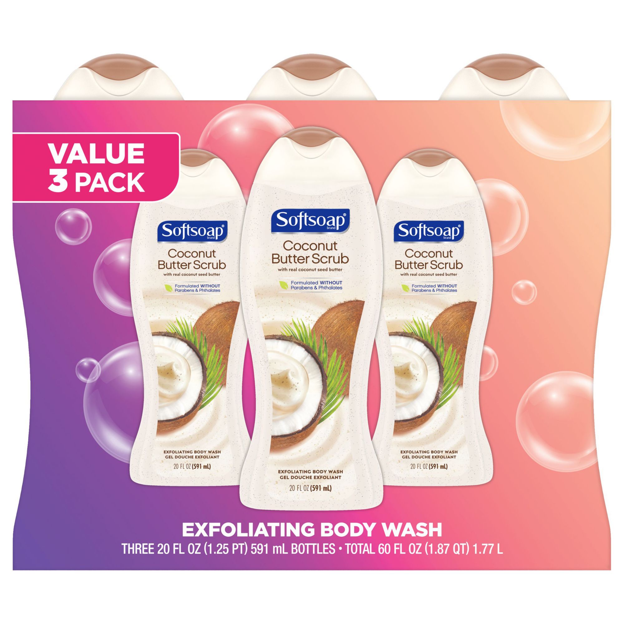 Softens skin by helping you retain natural moisture Invigorating coconut and jojoba butter scents Leaves your skin feeling conditioned, clean, and soft Enriched with jojoba butter and crushed coconut extracts to gently exfoliate Contains two 32 oz. Softsoap Coconut Butter Exfolitating Body Wash bottles