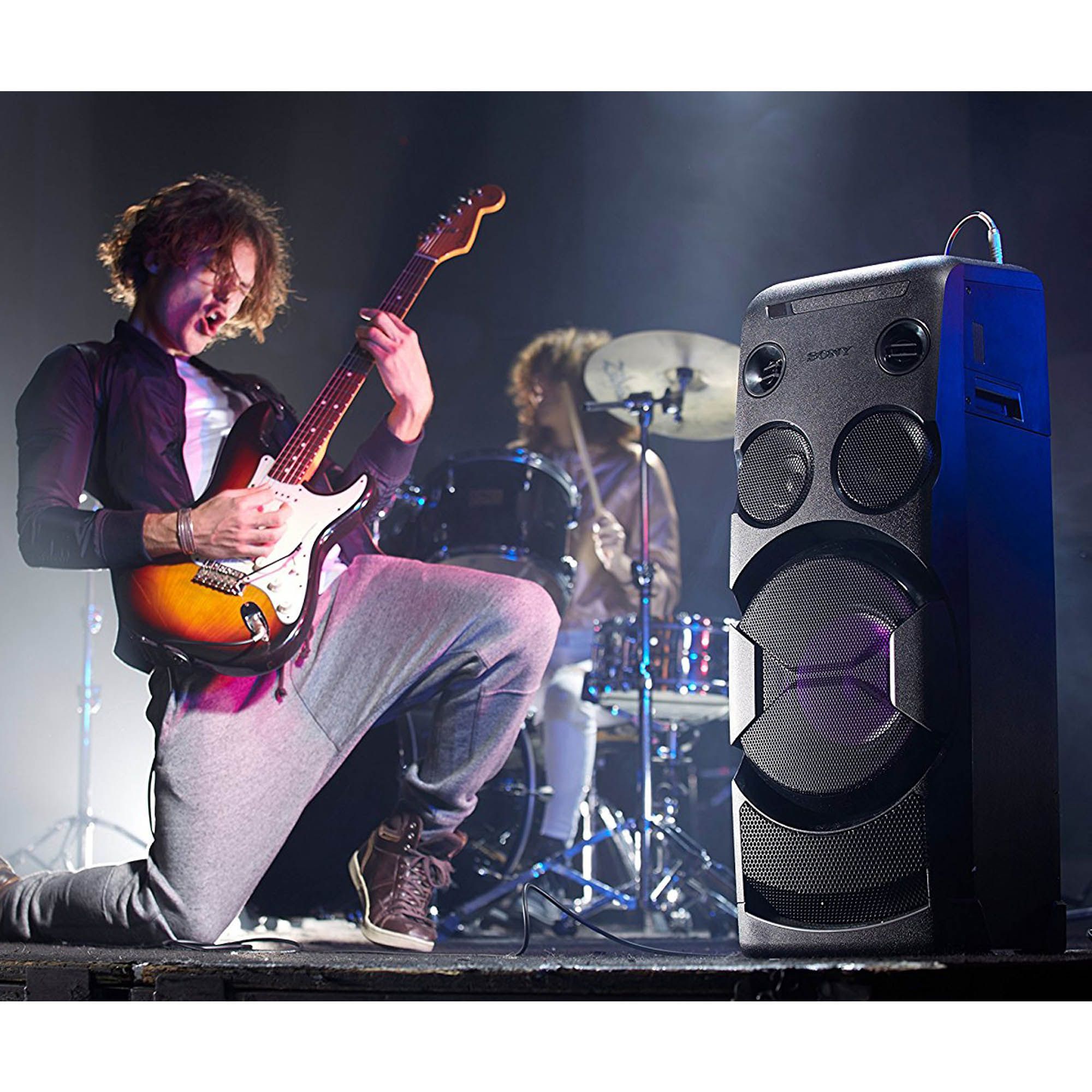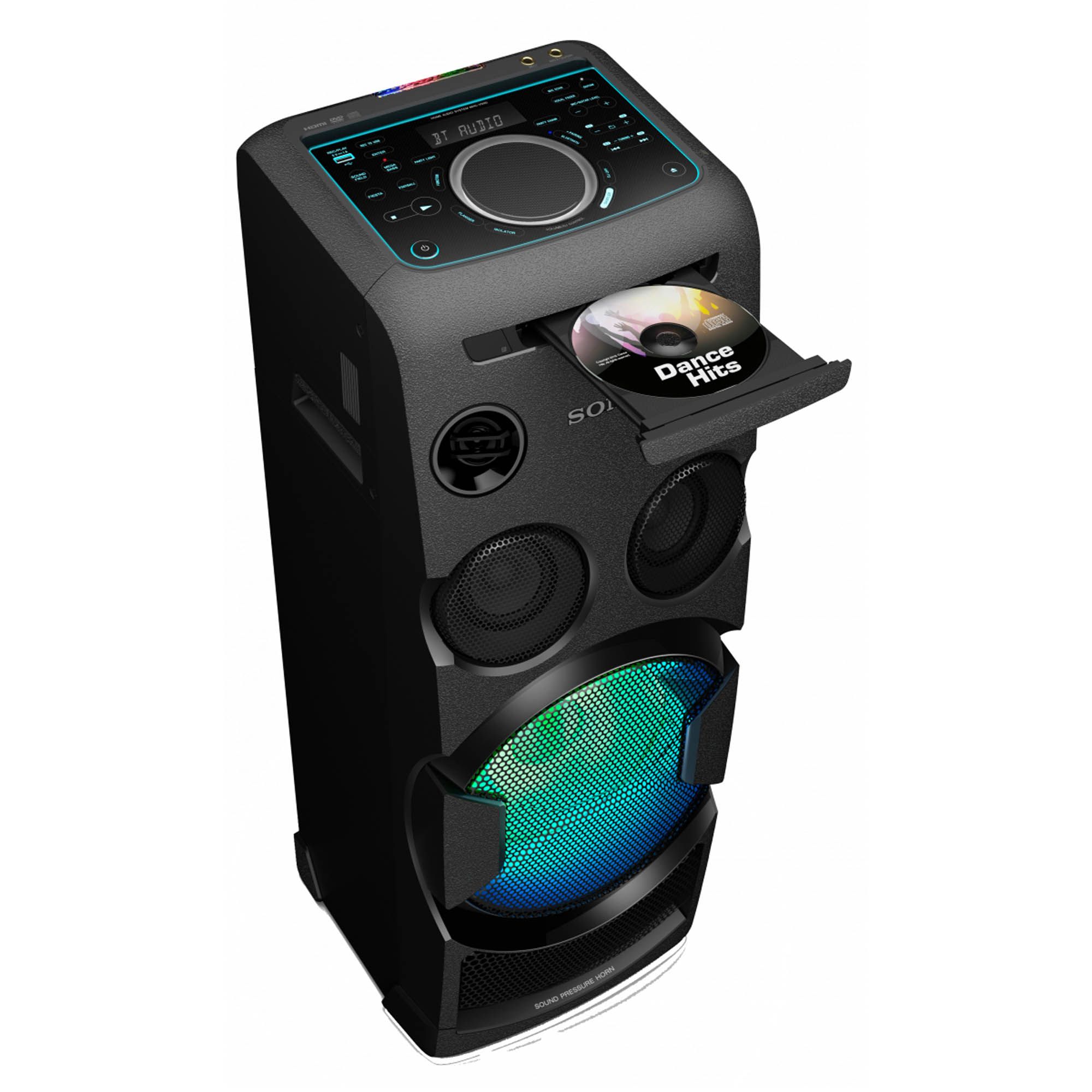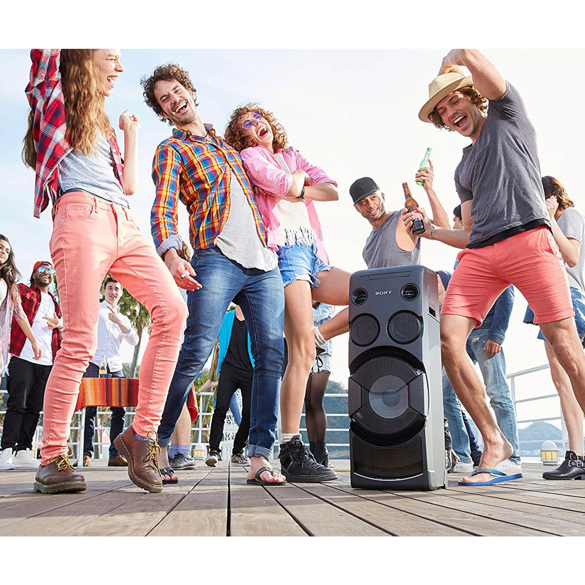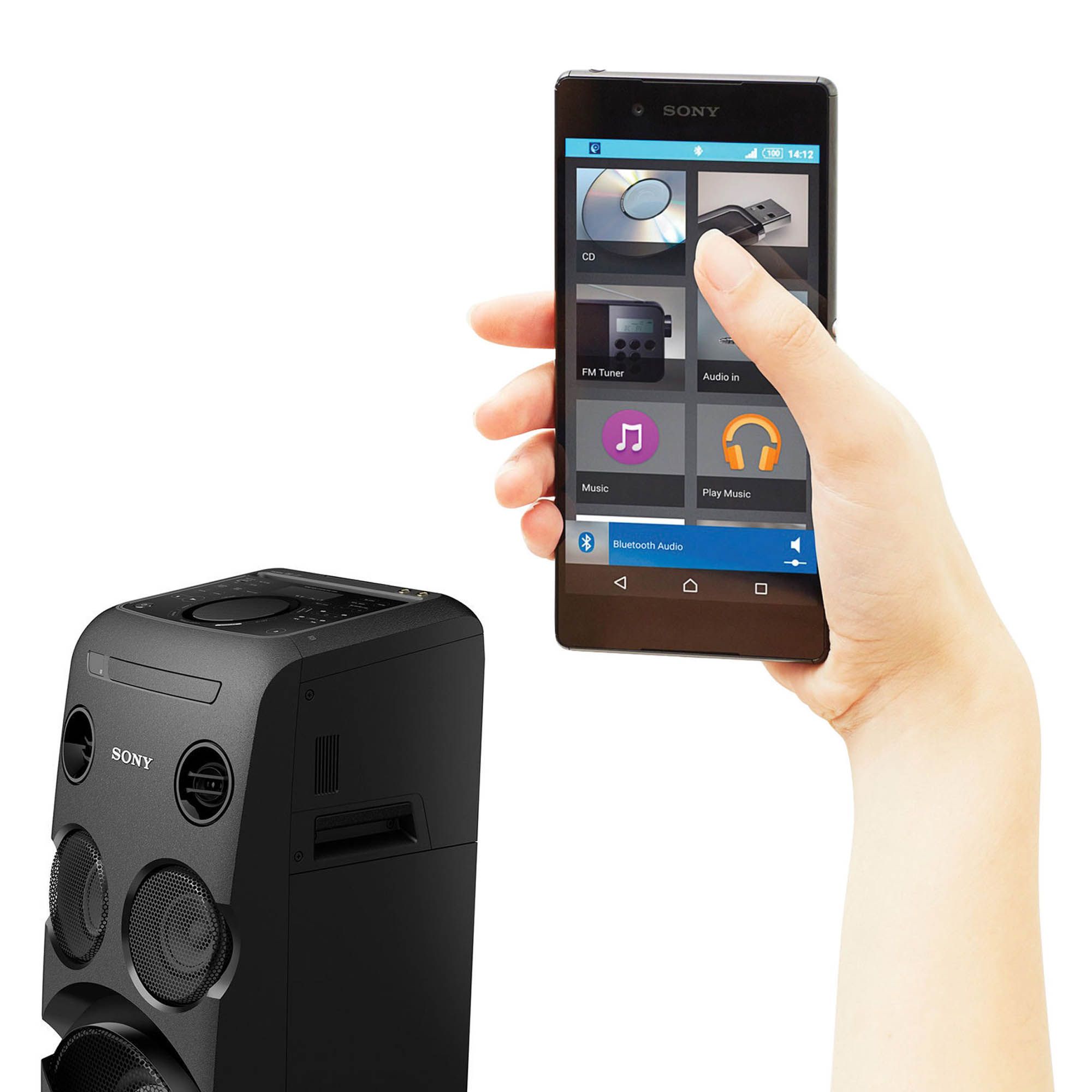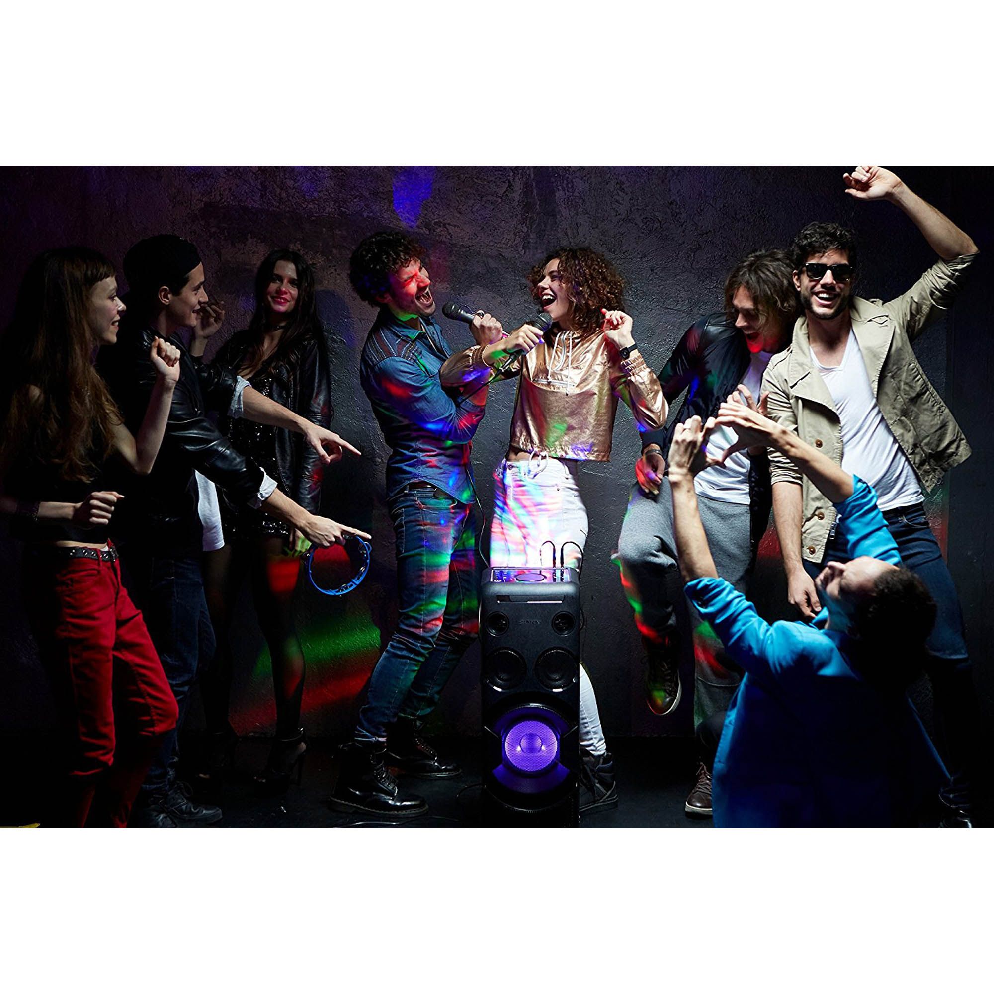 The Sony MHC-V50 high-power home audio system features Bluetooth streaming and multi-color lighting effects. The club-like speaker provides special DJ effects and karaoke functionality, and the touch keys feature an illuminated panel for easy control. Built-in handles make it easy to bring this audio system with you on the go.