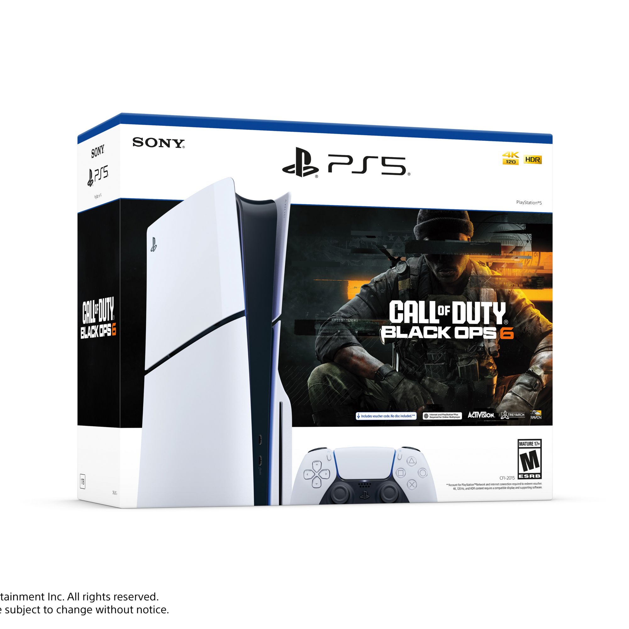 Includes Call of Duty: Black Ops 6 game voucher, wireless controller, two horizontal stand feet, HDMI cable, AC power cord, USB cable, printed materials