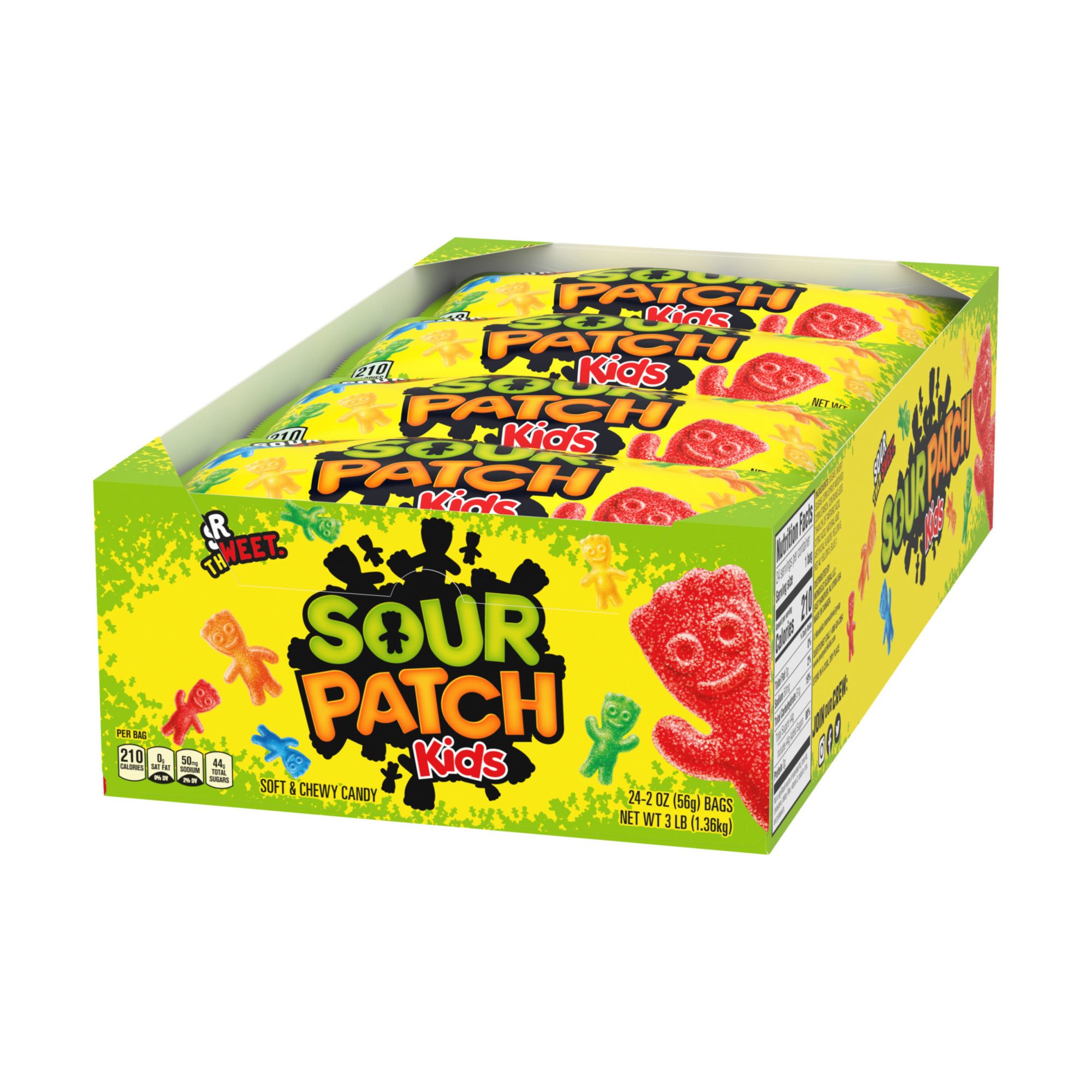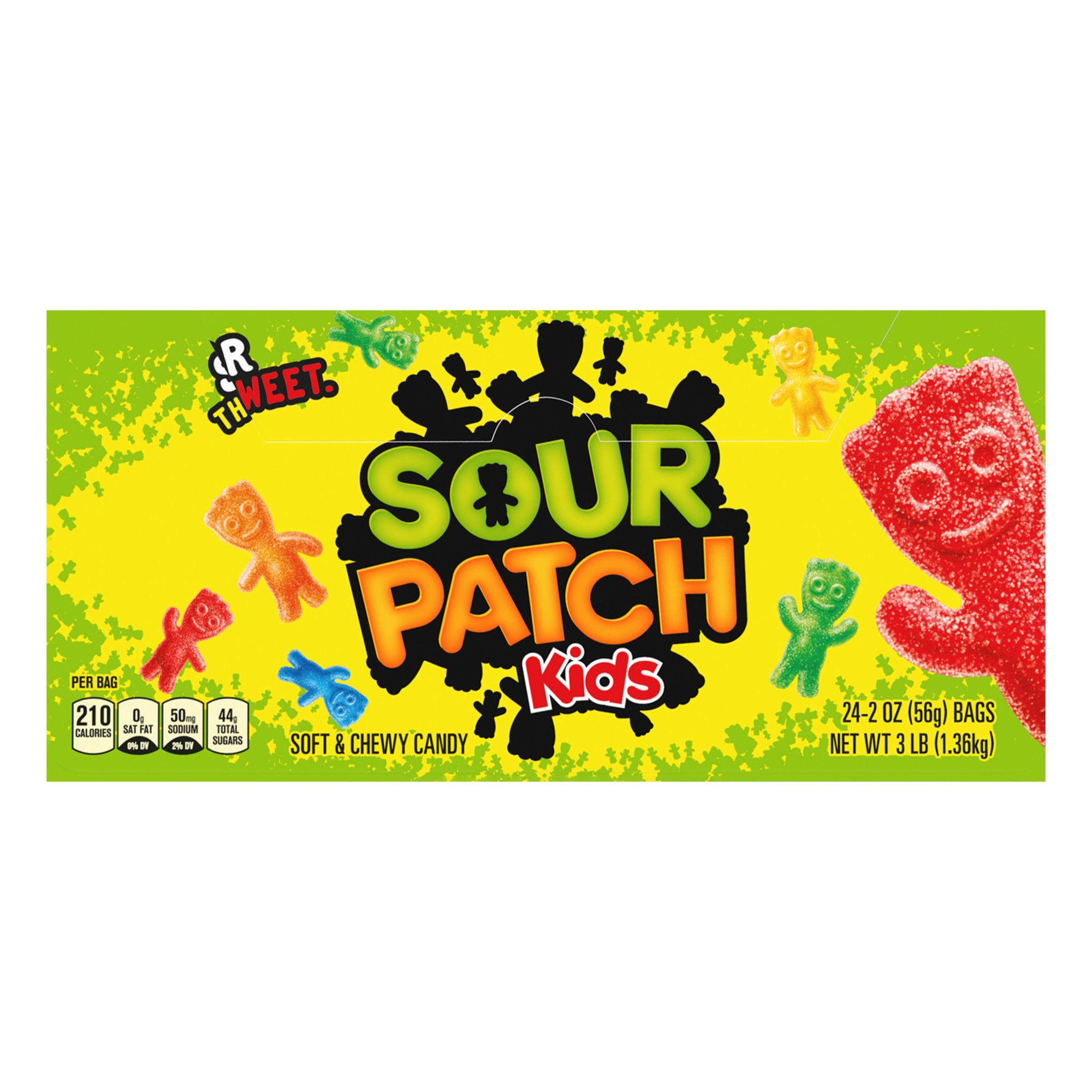 Sour Patch Kids Original Soft & Chewy Candy packs all the classic flavor into a mischief-filled soft candy. Sour Patch Kids chewy candies are a wholly delicious sweet treat that's Sour. Sweet. Gone. Each bag contains sour candies in signature assorted fruit flavors that create a sour then sweet treat to satisfy your taste buds. Add a little fun to your candy experience with the unique kid shapes that give these sour gummy snacks their name. A fat free food, this fruit flavored candy makes a great sour treat for multiple occasions. Keep Sour Patch Kids on-hand for quick snacks or as party favors for Halloween, Valentine's Day or birthdays. This soft candy also makes a great movie theater candy to snack on during your favorite flick. This bagged candy is perfect for on-the-go or throwing in a lunchbox.