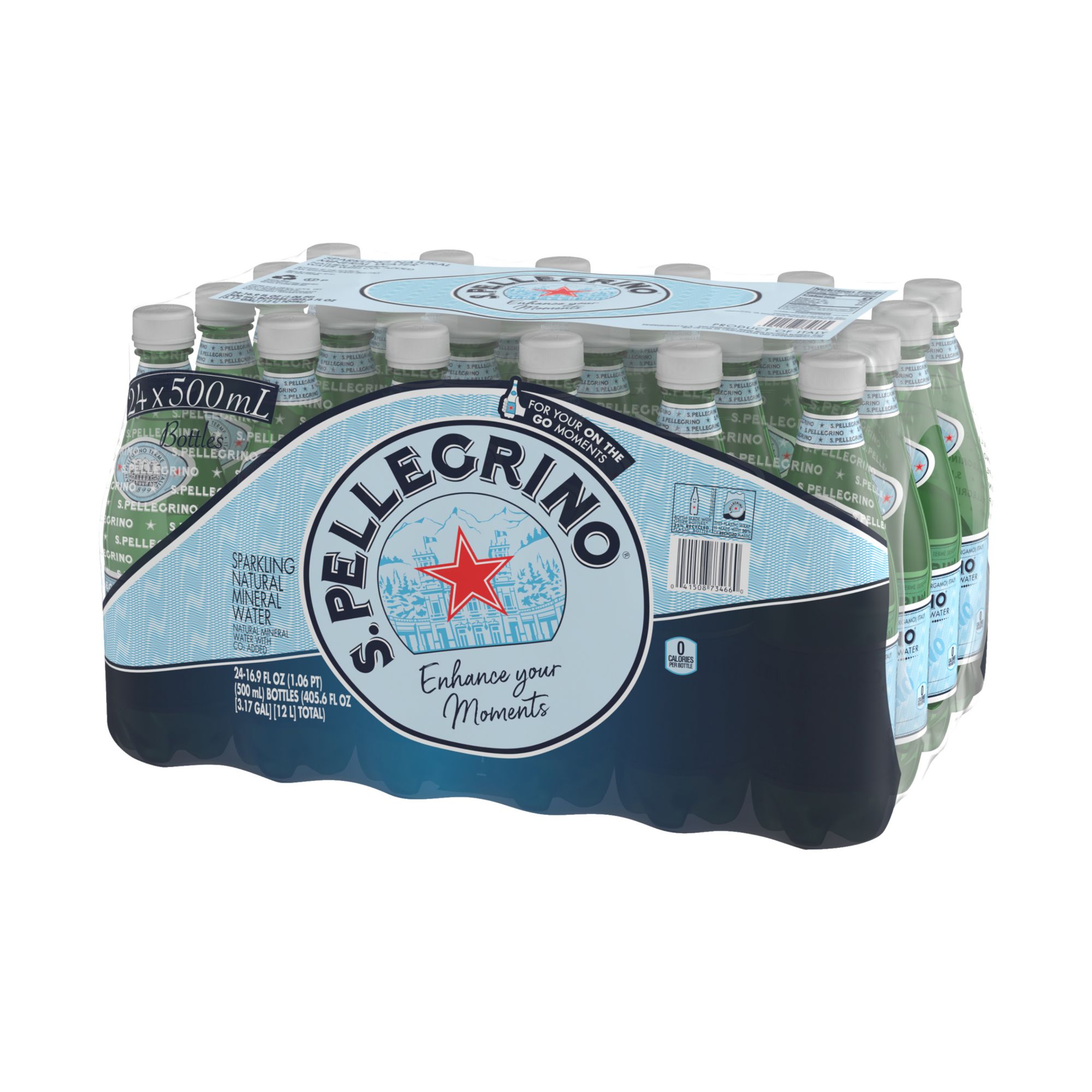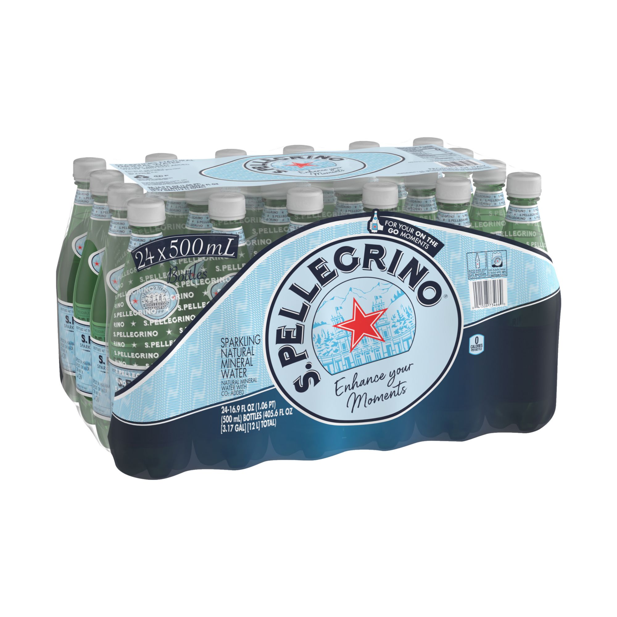 Includes twenty-four 16.9 fl. oz. (0.5 L) plastic bottles of S.Pellegrino Sparkling Natural Mineral Water