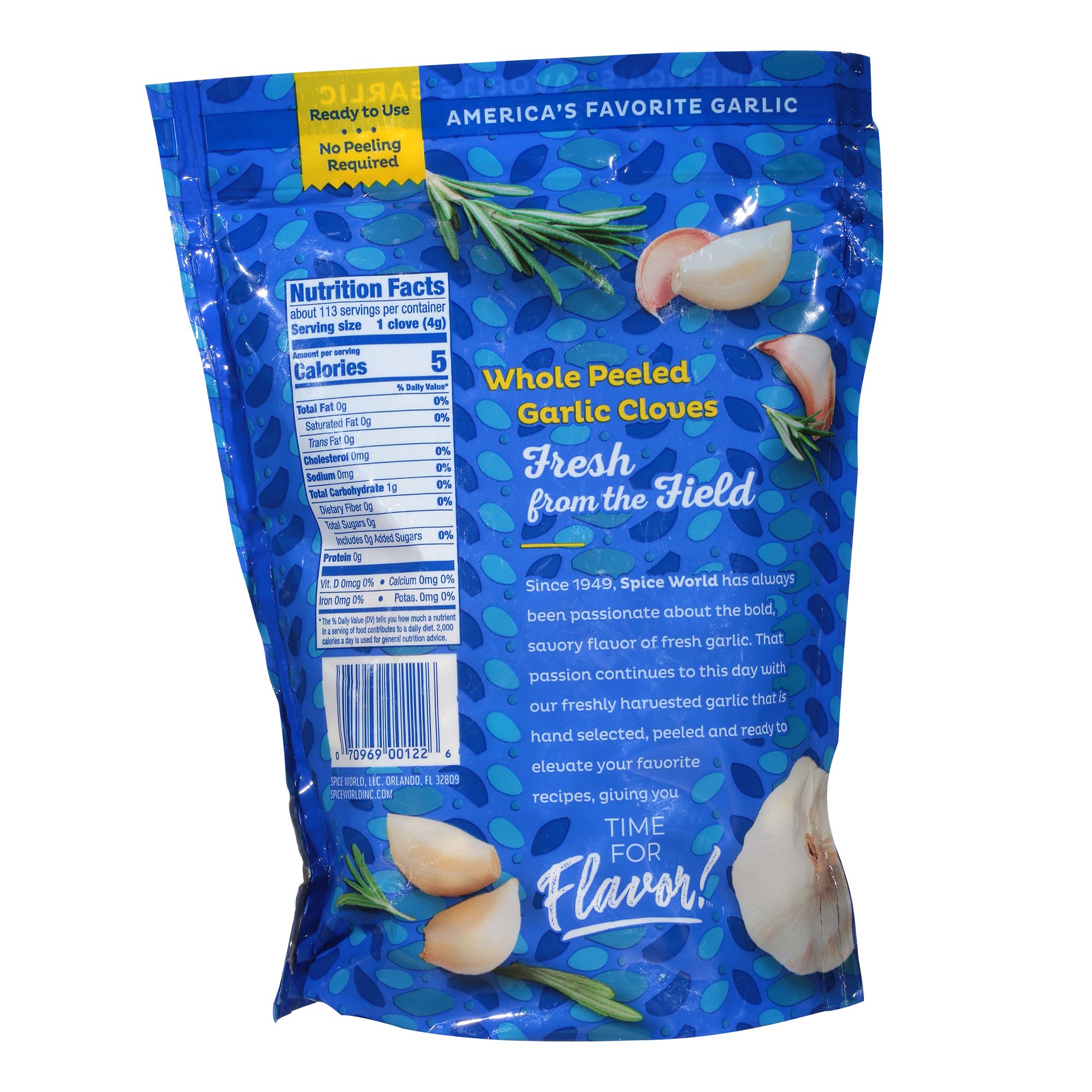 Already peeled for your convenience Excellent source of antioxidants Re-sealable bag Includes 1 lb. peeled garlic