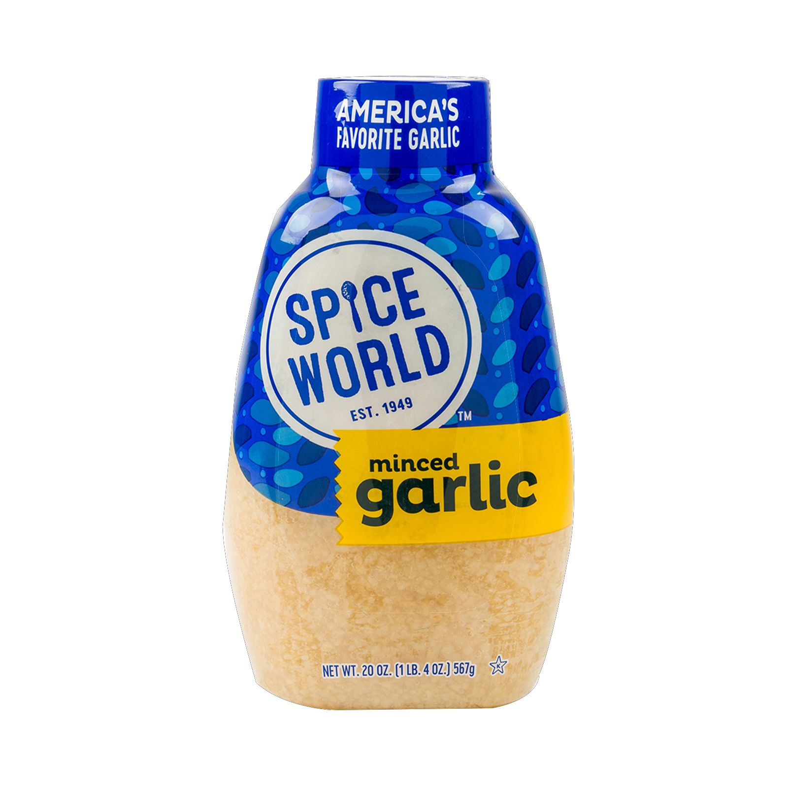Spice World Minced Garlic Squeeze is Minced & ready to use. Want to make garlic even more convenient? We’ve taken all the goodness of the minced garlic and put it into a convenient squeeze bottle. Spice World Squeezable Minced Garlic is perfect for sauces, marinades, and any recipe that could be enhanced with an instant squeeze of flavor.