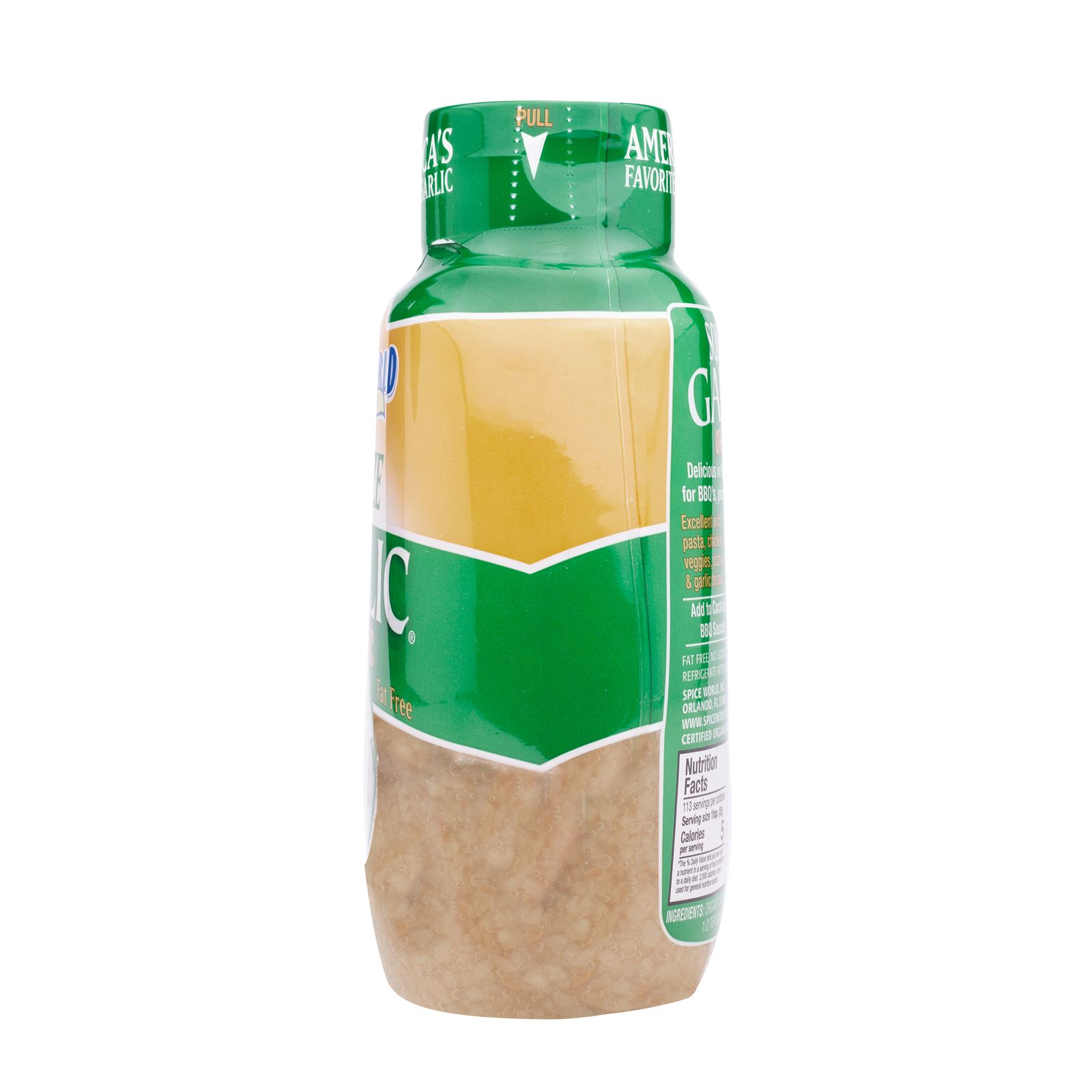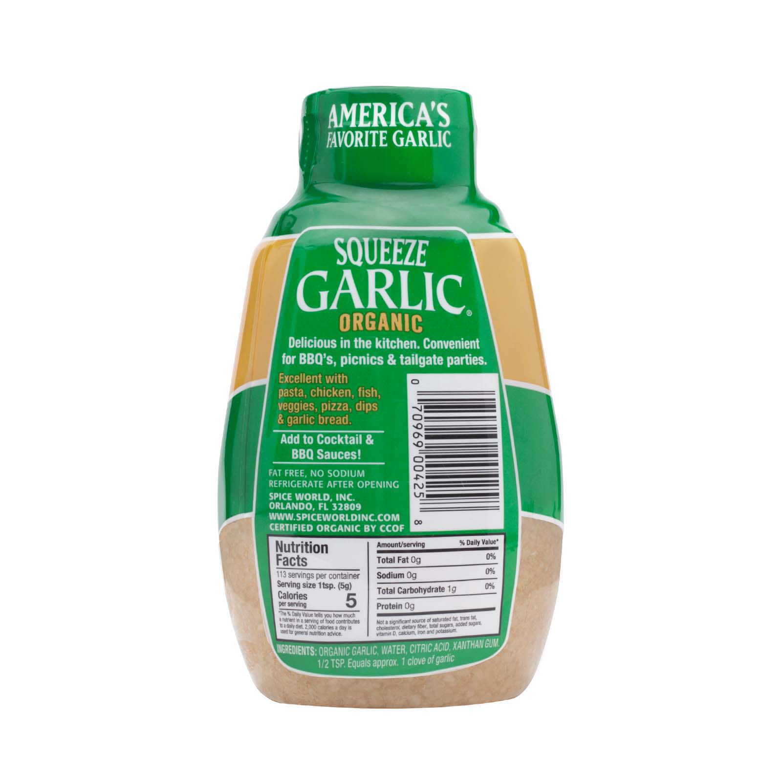 Organic Minced Squeeze Garlic from Spice World will spice up many recipes, and the squeezable bottle makes it easy to use.