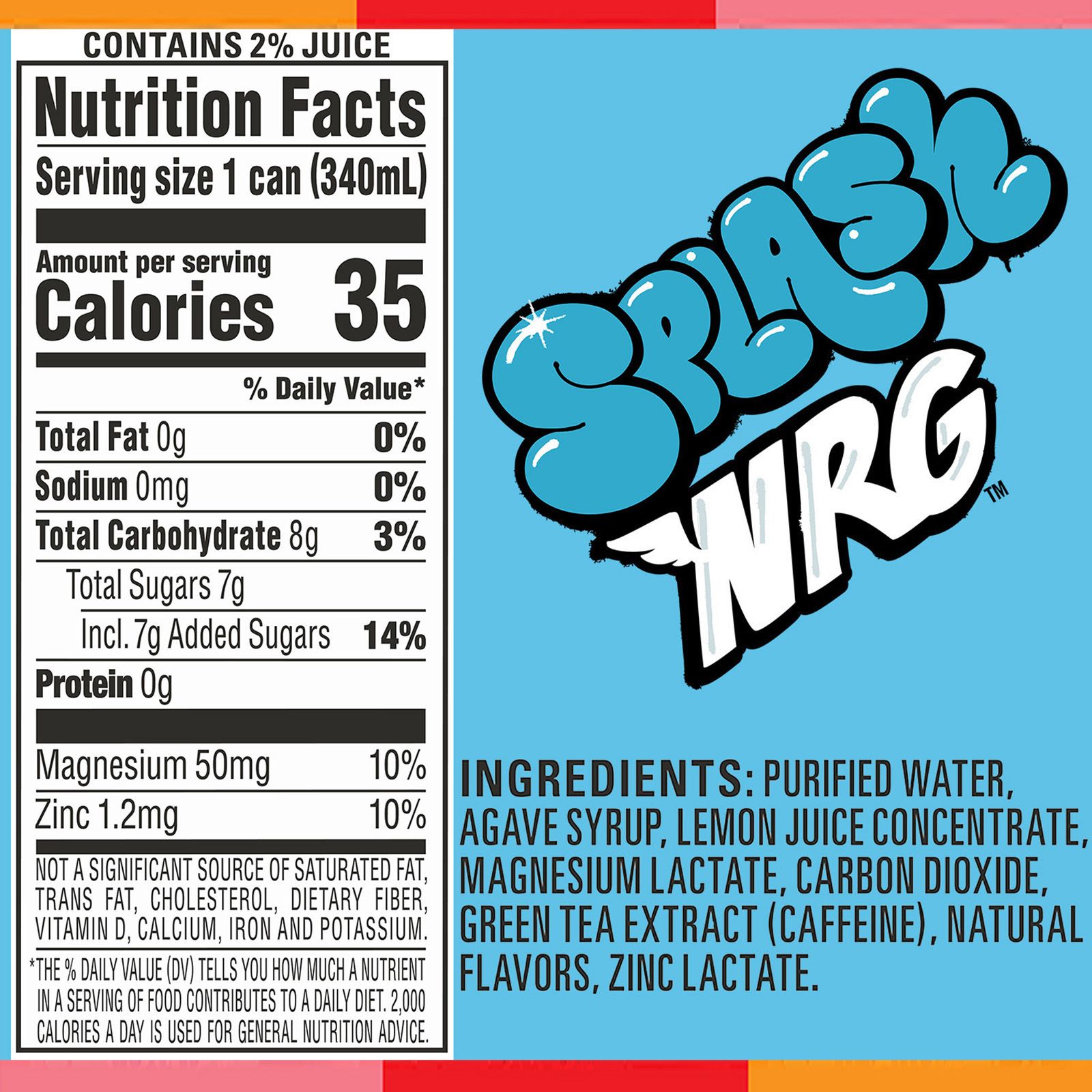 Fuel your fun with plant-based energy from Splash NRG — a delicious range of bold, fruit-flavored sparkling energy water beverages for people with a thirst for life. Made with carbonated water and caffeine from green tea extract, a good source of zinc and magnesium electrolytes, and just 35 calories per can, it’s an alternative to other energy drinks. And with 75mg of plant-based caffeine, it provides great-tasting, energy. Spark your day with a range of refreshing fruit flavors sweetened with agave, like Splash NRG Super Berry, Valencia Orange, and White Peach flavors. Perk up with a boost of fruity energy on the go, which can help you keep your cool during marathon gaming sessions or workouts. Try a refreshing boost of plant-based energy and drink in your day with Splash NRG. Own your day with orange flavor: Sparkling water and a splash of caffeine mixed with citrusy orange flavor to boost your energy. Supercharge with super berry flavor: Sparkling water and a splash of caffeine mixed with the gentle buzz of berry flavor to add a spark to your day. Power up with peach flavor: Sparkling water and a splash of caffeine mixed with vibrant peach flavor to perk up your playtime.