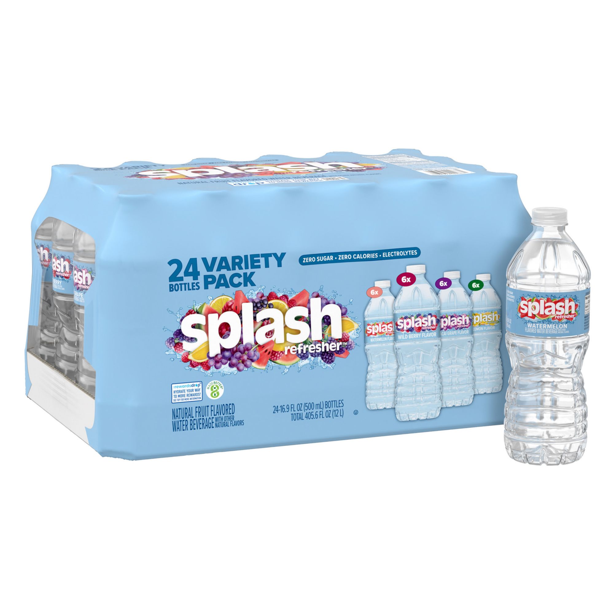 Splash Refresher Variety Pack, Acai Grape, Lemon, Orange, Wild Berry, Watermelon, 24 pk./16.9 oz.