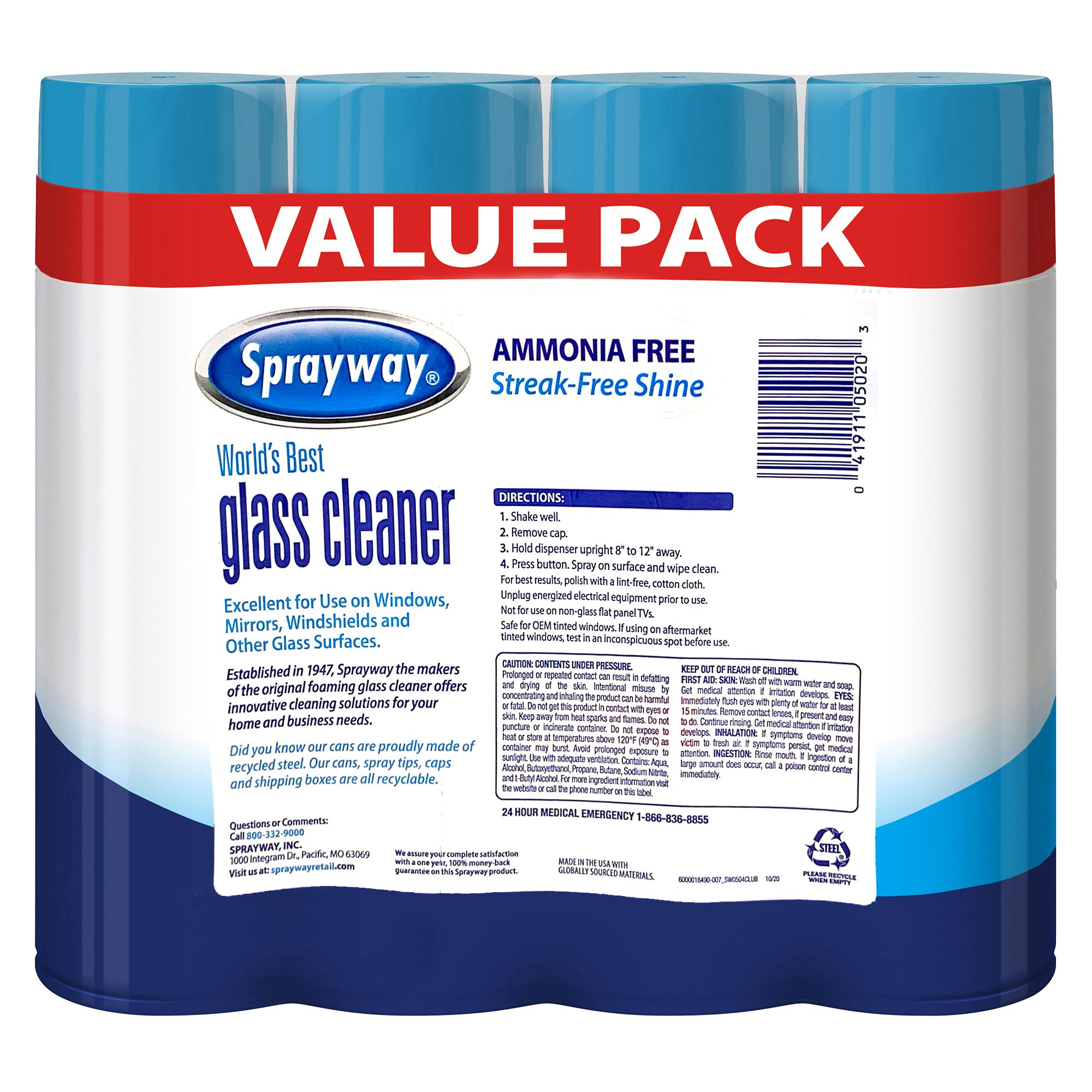 Sprayway Glass Cleaner features fast-acting glass cleaner that won't drip, run or streak. The heavy duty foam clings to vertical surfaces to dissolve dirt, grease, grit and grime. The ammonia-free formula cleans thoroughly, dries quickly and leaves a clean fresh scent.