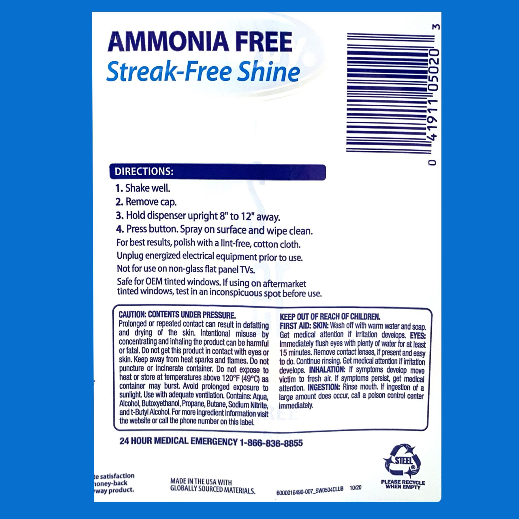 Fast-acting glass cleaner Foaming action Ammonia-free Streak-free shine Fresh clean scent Product of USA Includes four pack of 19-oz. glass cleaner
