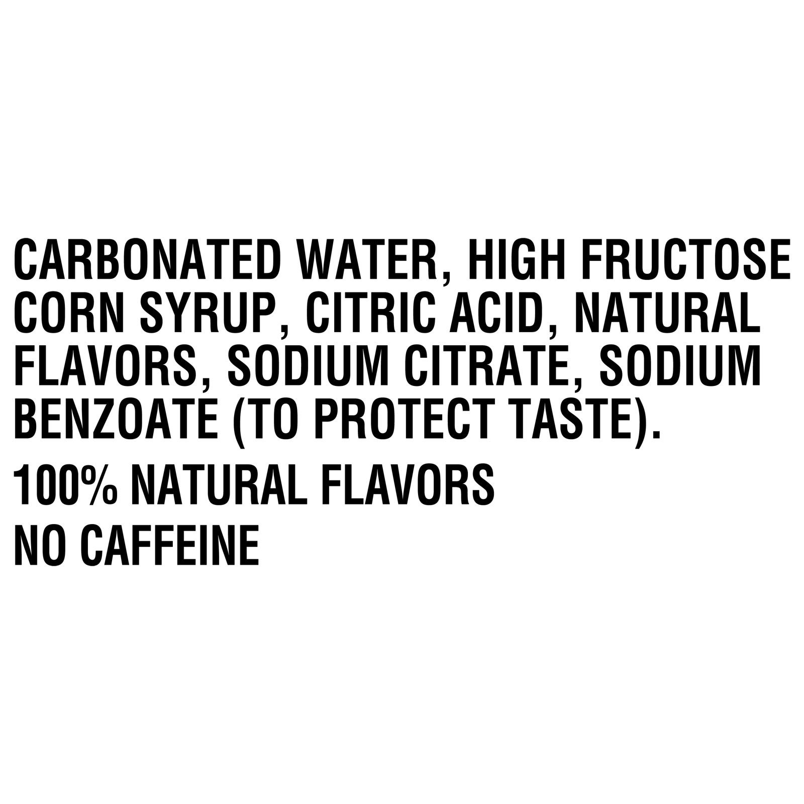 Ingredients: Carbonated Water, High Fructose Corn Syrup, Citric Acid, Natural Flavors, Sodium Citrate, Sodium Benzoate (To Protect Taste).