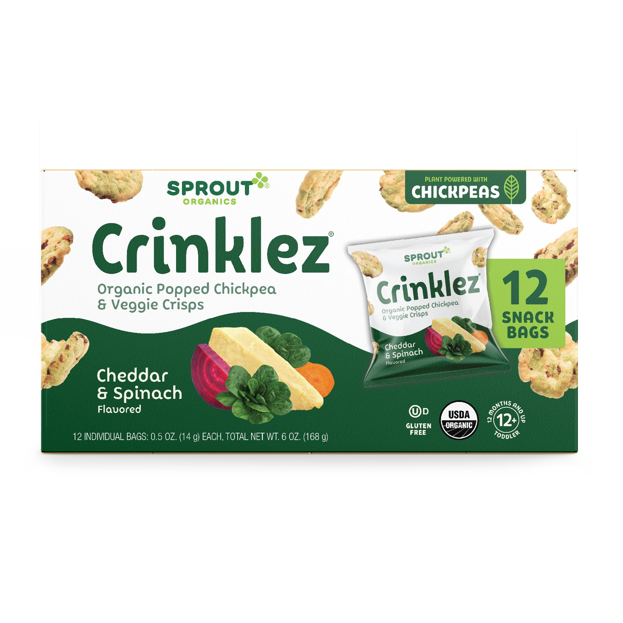 Sprout Organics Crinklez are a crunchy, veggie finger food that brings delicious and nutritious together for babies and toddlers 12+ months. Sprout Crinklez are all USDA certified organic, non-GMO and gluten-free. They do not contain any added sugar or anything artificial. Made with organic plant-powered chickpeas, Sprout Veggie Crinklez are popped with colorful carrots, spinach, and beets that you can see in every bite. Sprout is committed to your little ones' well being. All of their baby and toddler foods are made from the cleanest ingredients and nothing artificial. Try Sprout's full line of organic Stage 2 and Stage 3 baby food pouches, baby snack puffs, Stage 4 toddler pouches, toddler snacks and toddler meals.