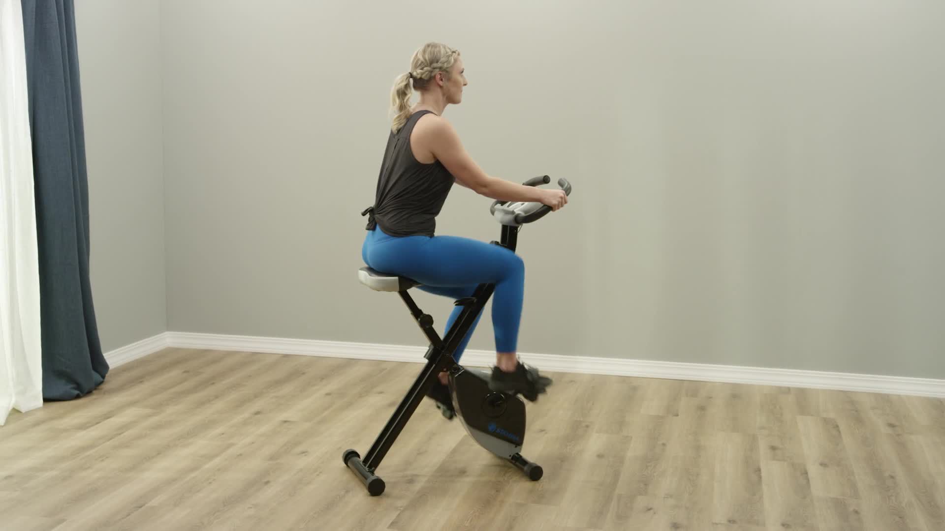 Space-saving design. The durable, lightweight Stamina Folding Exercise Bike 182 is ideal for users with limited space. Built-in wheels allow for easy transport to move the bike out of the way. The slim frame easily folds with the pull of a pin. Lastly, anti-skid endcaps help protect your floor space. Look no further than the Stamina Folding Exercise Bike 182 for a compact, cardiovascular exercise solution that packs a punch.