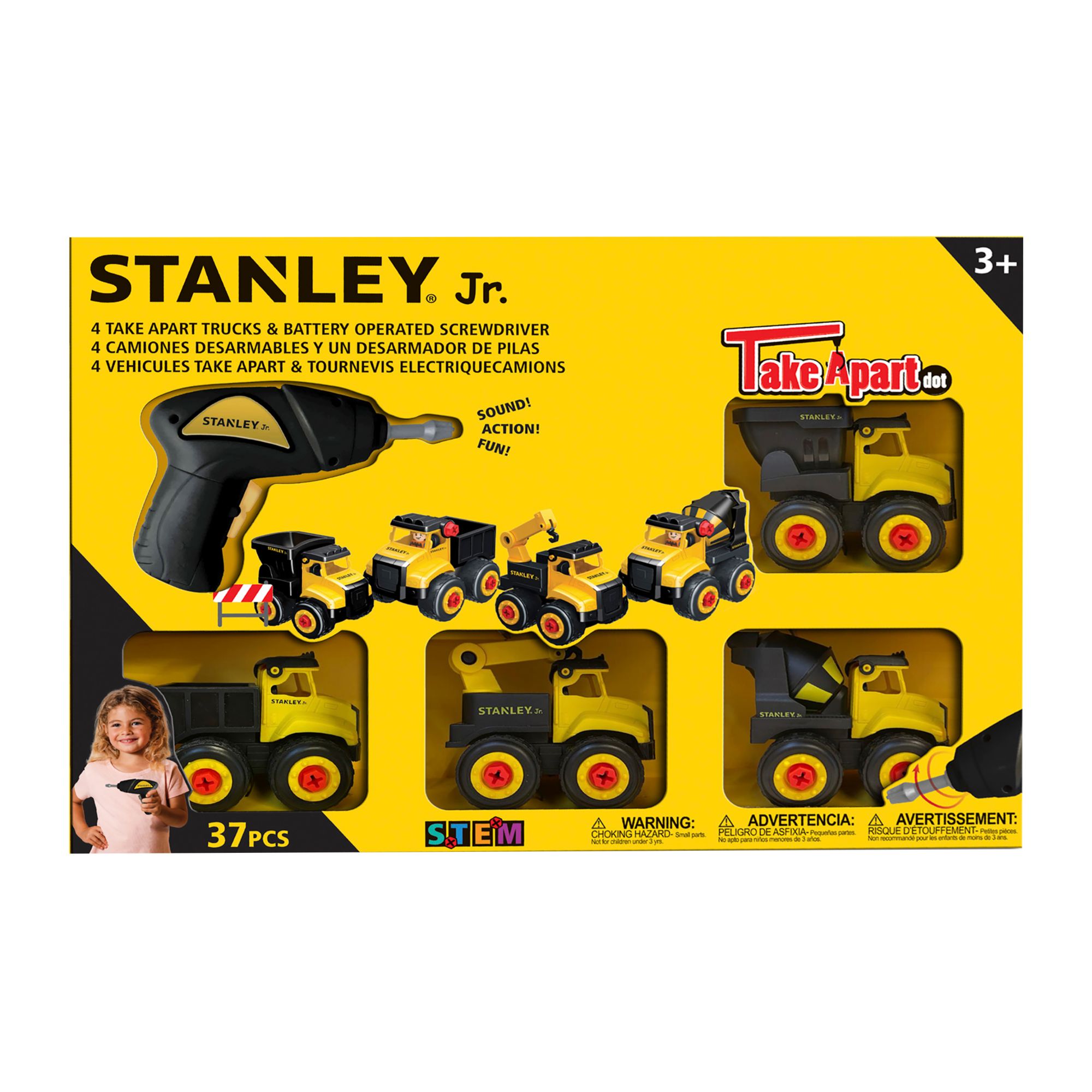 This set comes with all four of the Stanley Jr. Take Apart DOT trucks, the dump truck kit, cement truck kit, tow truck kit, tipper truck kit and the Electric Drill made for small hands. This really is the whole package.