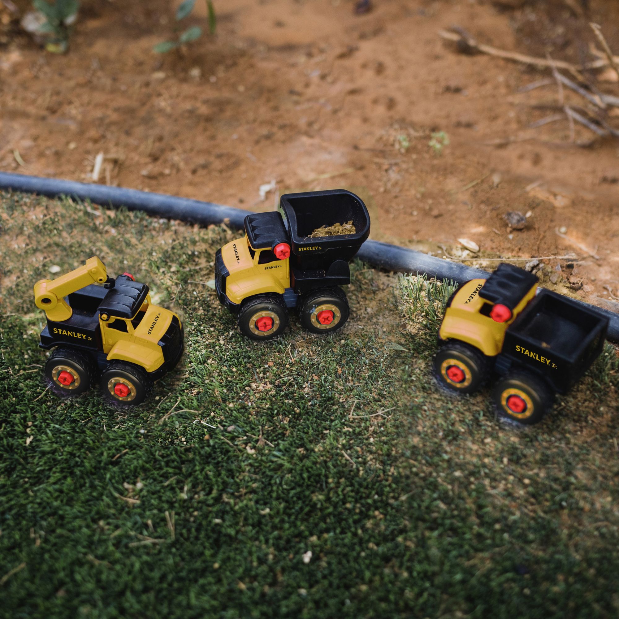 Educational and fun: The yellow and black construction toy trucks by Stanley Jr. are ideal for fun and education among children