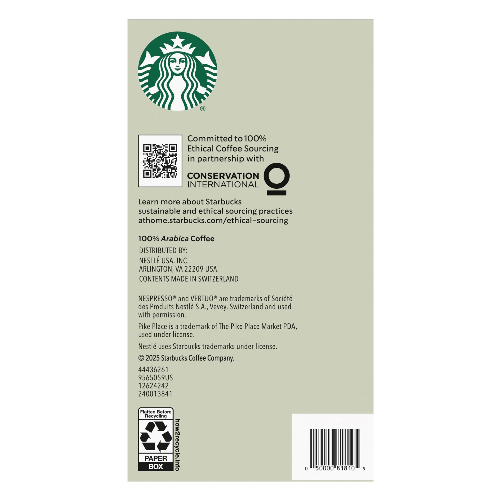 Starbucks by Nespresso pods: Enjoy the Starbucks coffee you love with this box of 60 espresso Vertuo machine capsules containing 20 Espresso Roast capsules, 16 Starbucks Pike Place Roast capsules, 16 Starbucks Double Espresso capsules and 8 Starbucks Caffe Verona capsules.