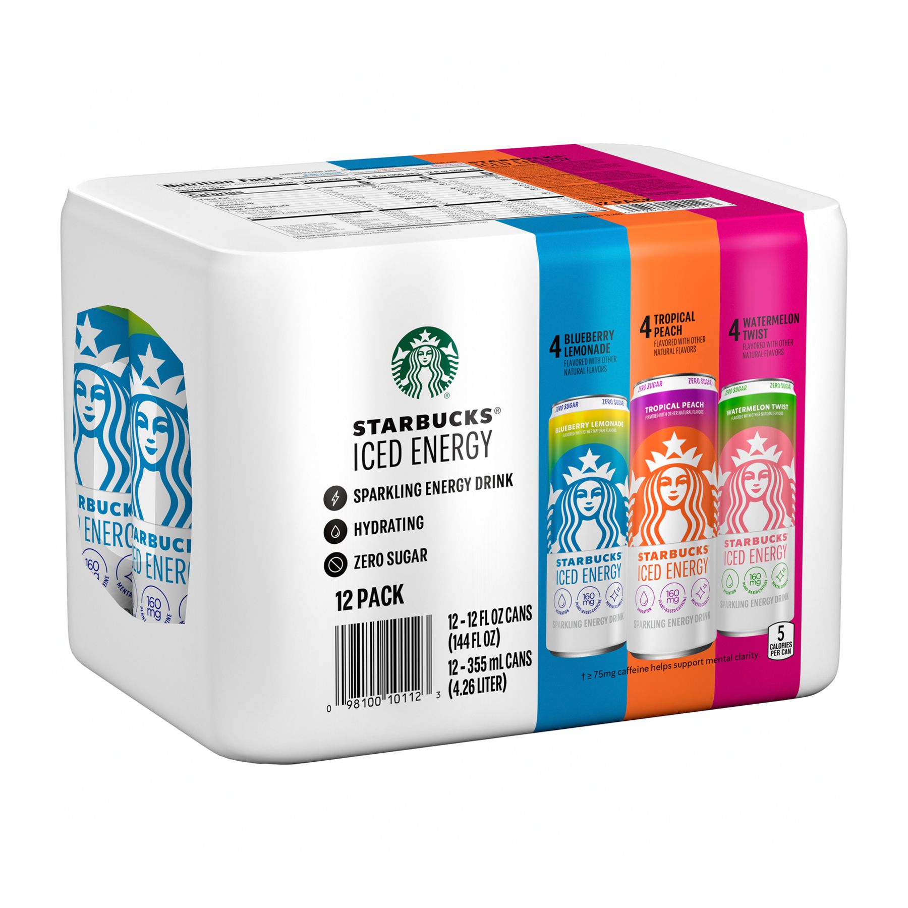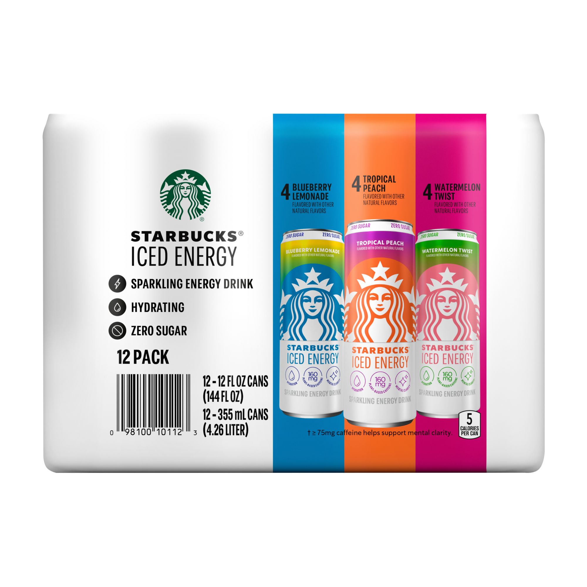 Starbucks Iced Energy Variety Pack, Watermelon Twist, Tropical Peach, Blueberry Lemonade, 12 pk./12 oz.
