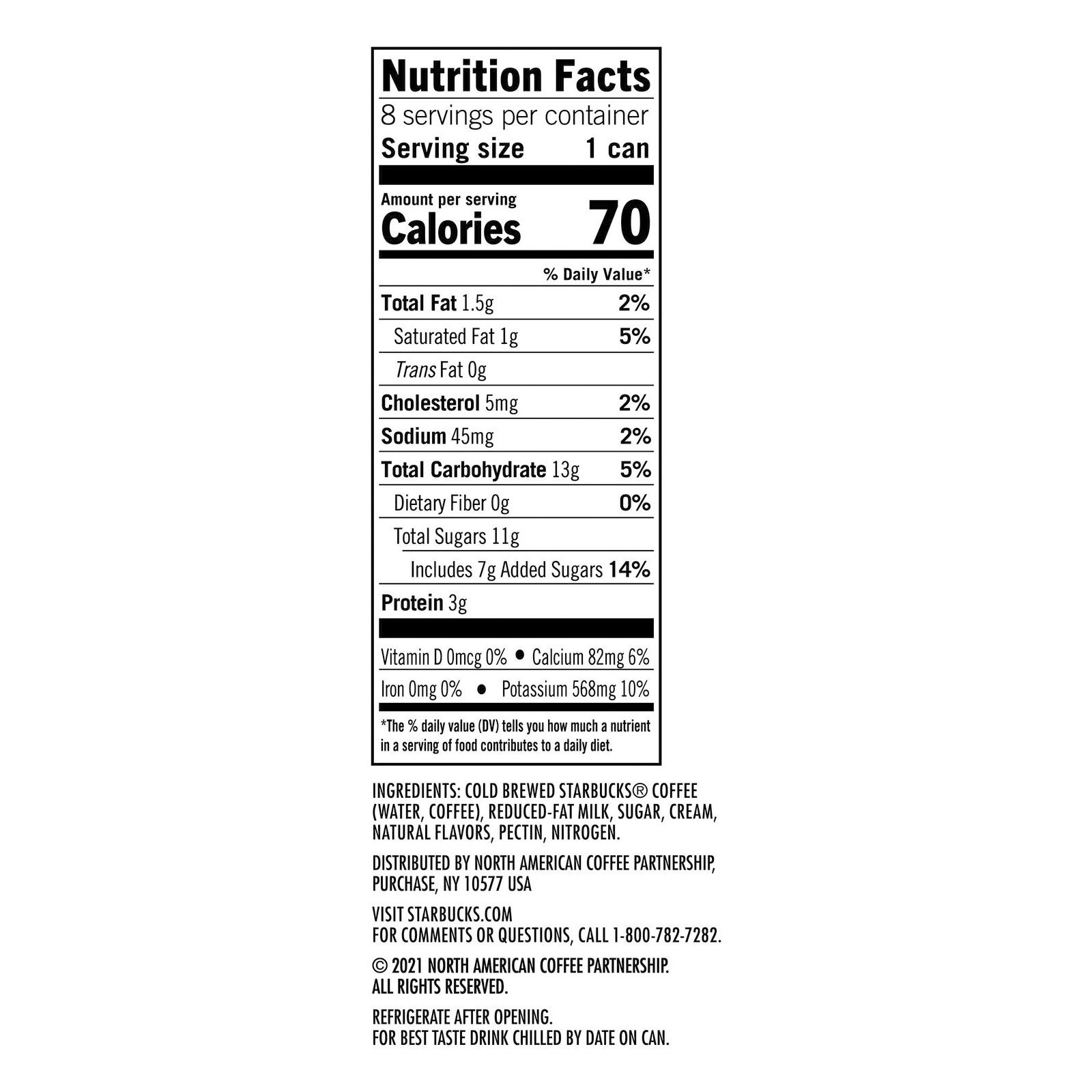 Cold Brewed Starbucks Coffee (Water, Coffee), Reduced Fat Milk, Sugar, Cream, Natural Flavors, Pectin, Nitrogen