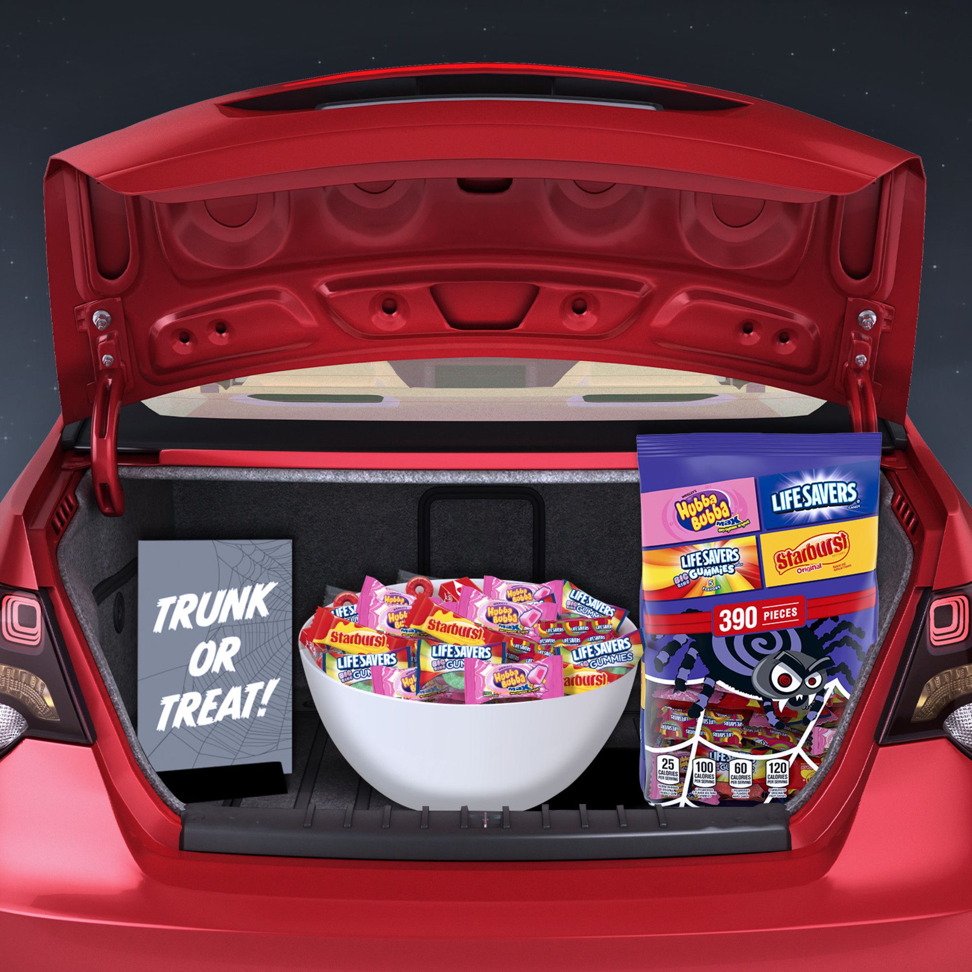 Includes bulk candy bag with assorted candies, 390 ct.