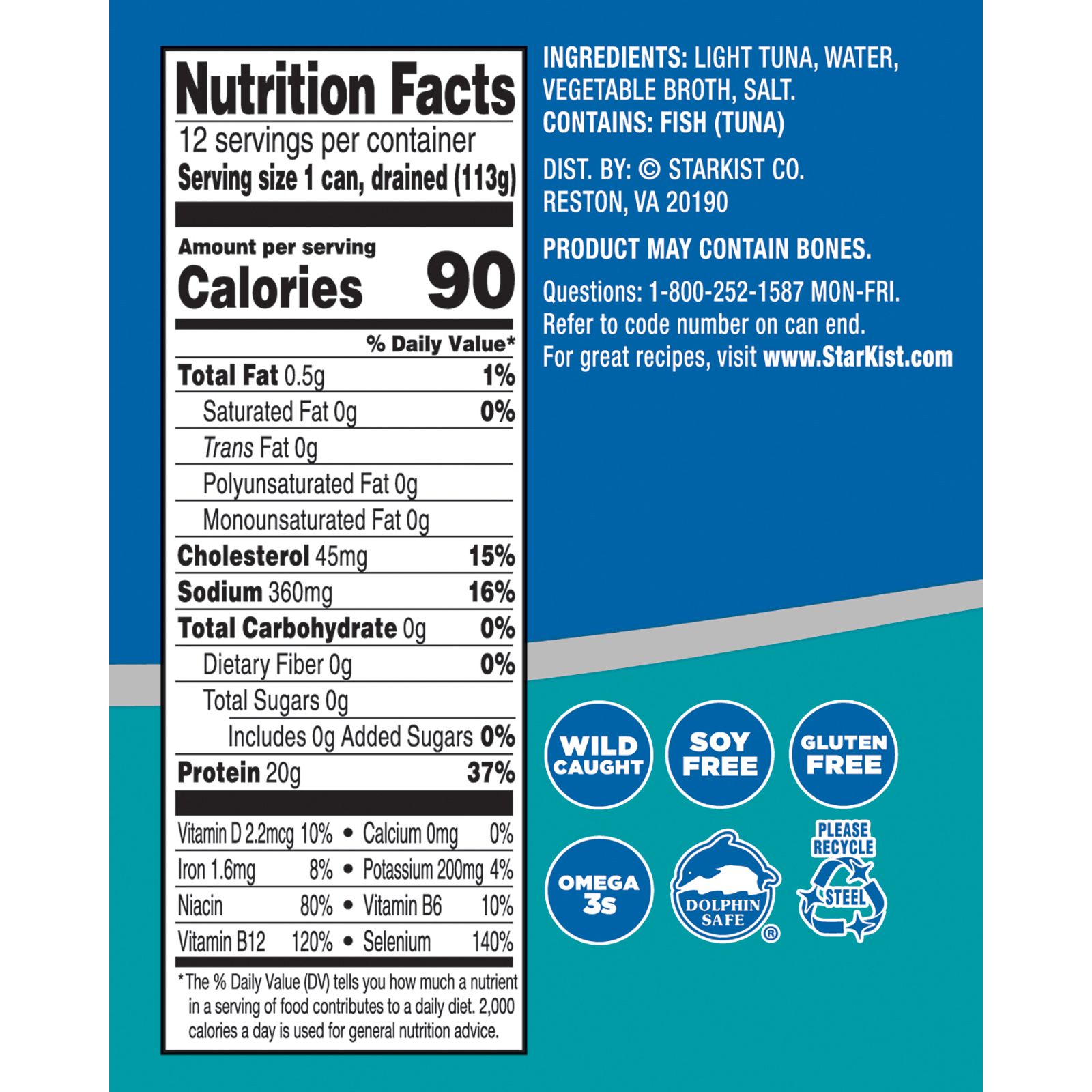 StarKist Chunk Light Tuna in Water can features wild caught tuna with a naturally mild flavor people have come to expect from StarKist. Try this in cool tuna salads and hot casseroles - StarKist makes it easy to incorporate seafood into your lifestyle. With 90 calories and 20g of protein per can, this nutrient dense tuna can works well with Mediterranean, Weight Watchers, Keto and Paleo diet plans.