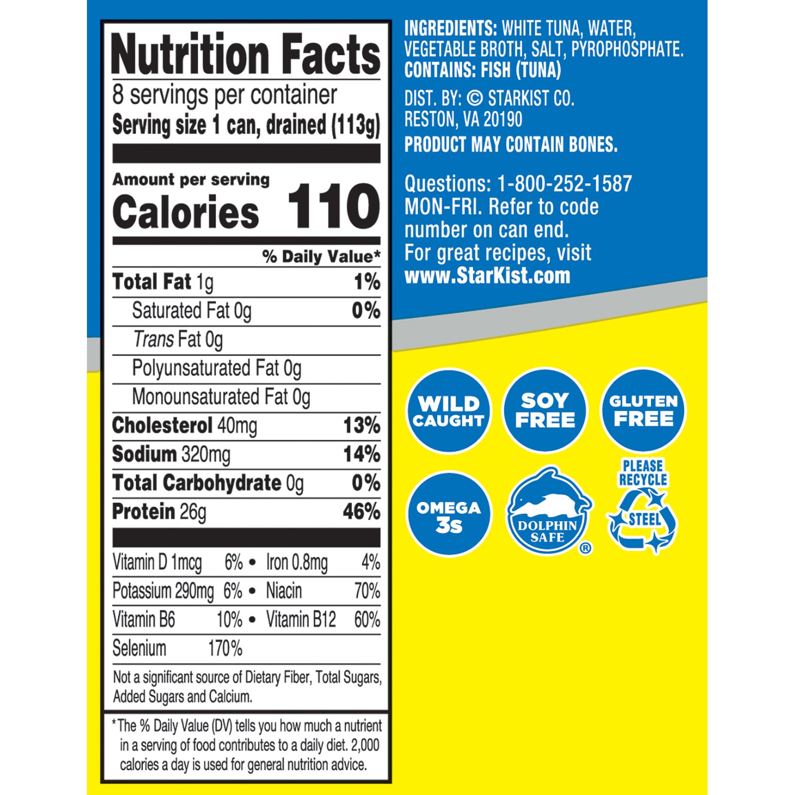 Refreshing Solid White Albacore Tuna in Water Helps maintain a healthy heart Natural source of Omega-3 Low in fat, high in protein Dolphin safe Includes eight cans of StarKist Solid White Albacore Tuna in water, 5 oz. each