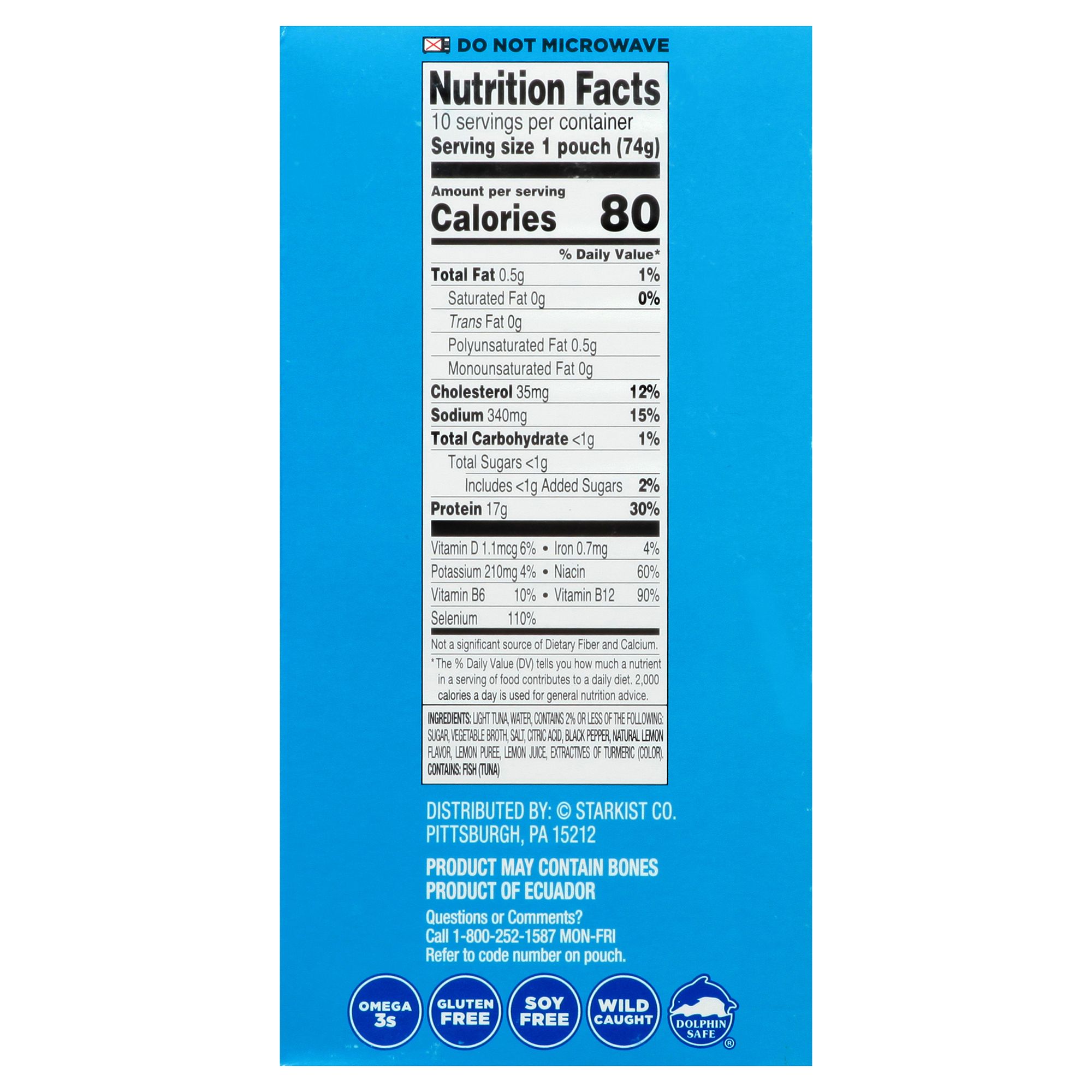 Includes lemon pepper flavored tuna packets, 10 pk./2.6 oz. each
