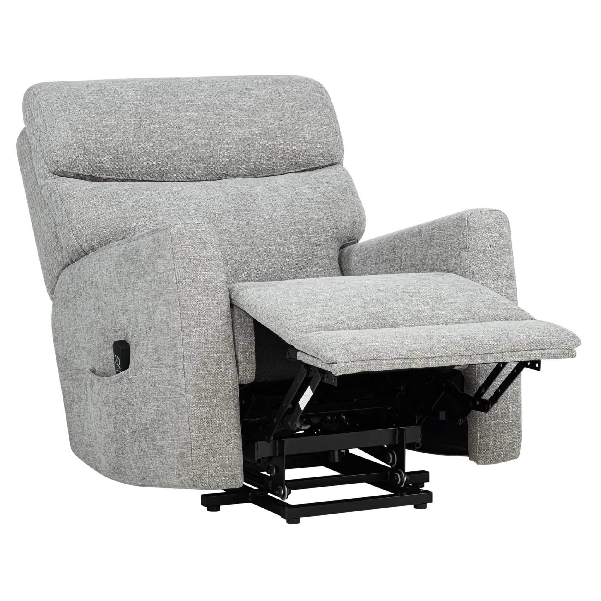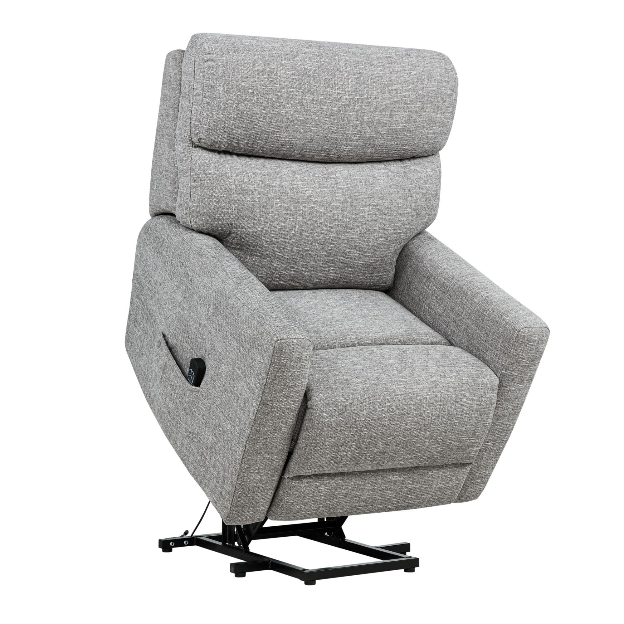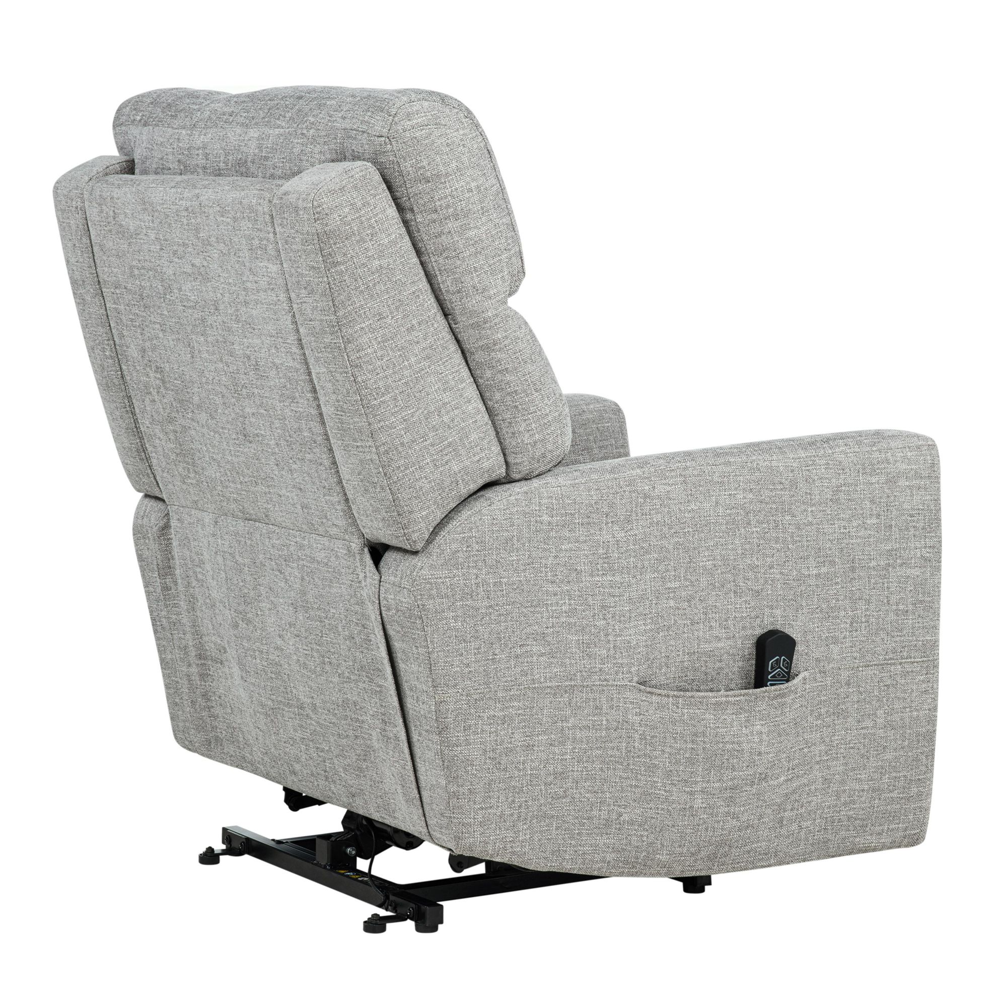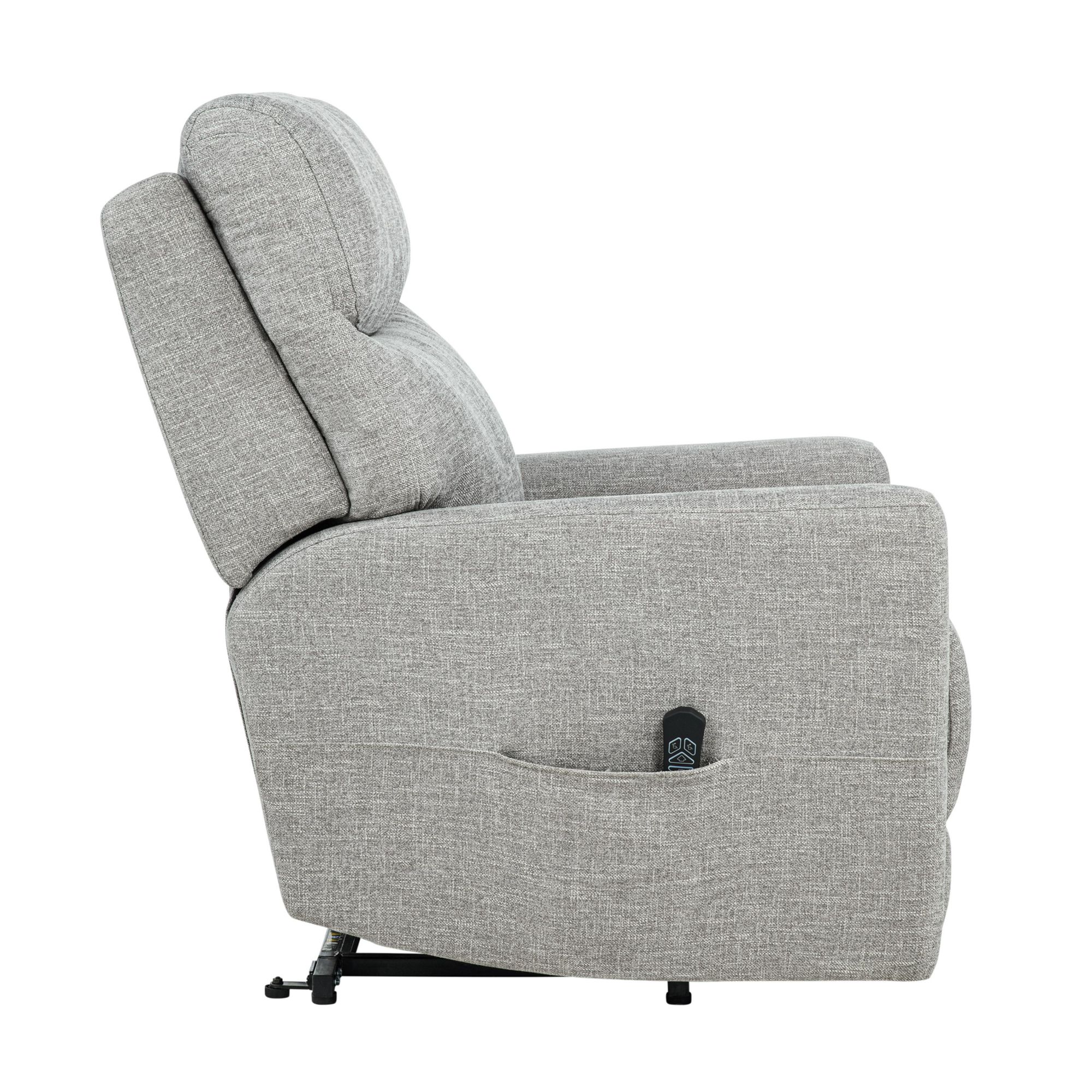 Power lift and recline functionality with smooth, quiet operation Wired remote allows easy control of lift, recline, and footrest functions Supportive pocket coil seat with memory foam for plush comfort Padded backrest and arms offer all-day relaxation Upholstered in soft, durable polyester fabric Reclines to multiple positions for customized comfort Sturdy solid and plywood frame designed for lasting durability Designed to support mobility needs with effortless standing assistance Includes lift chair, warranty cart, AI, Hardware
