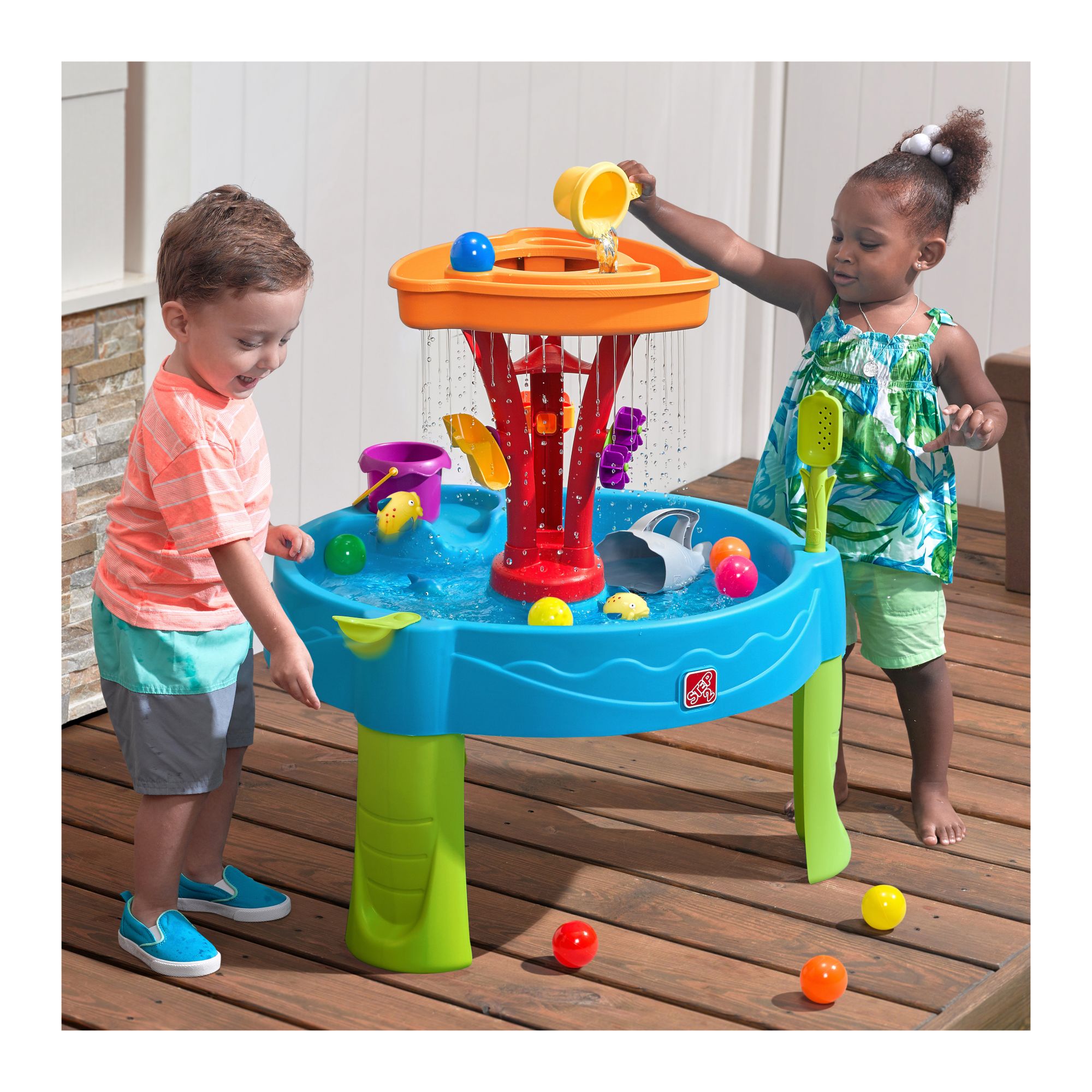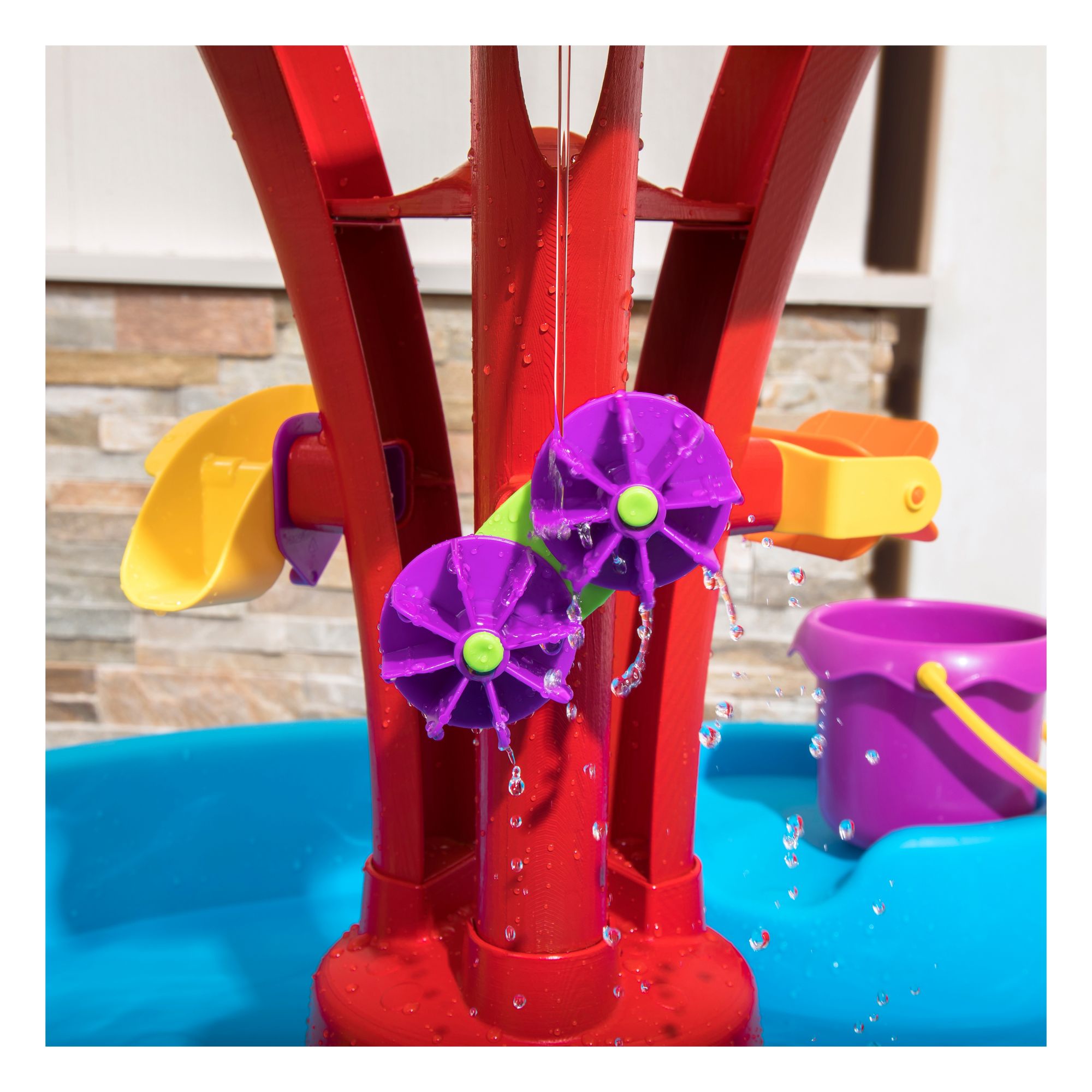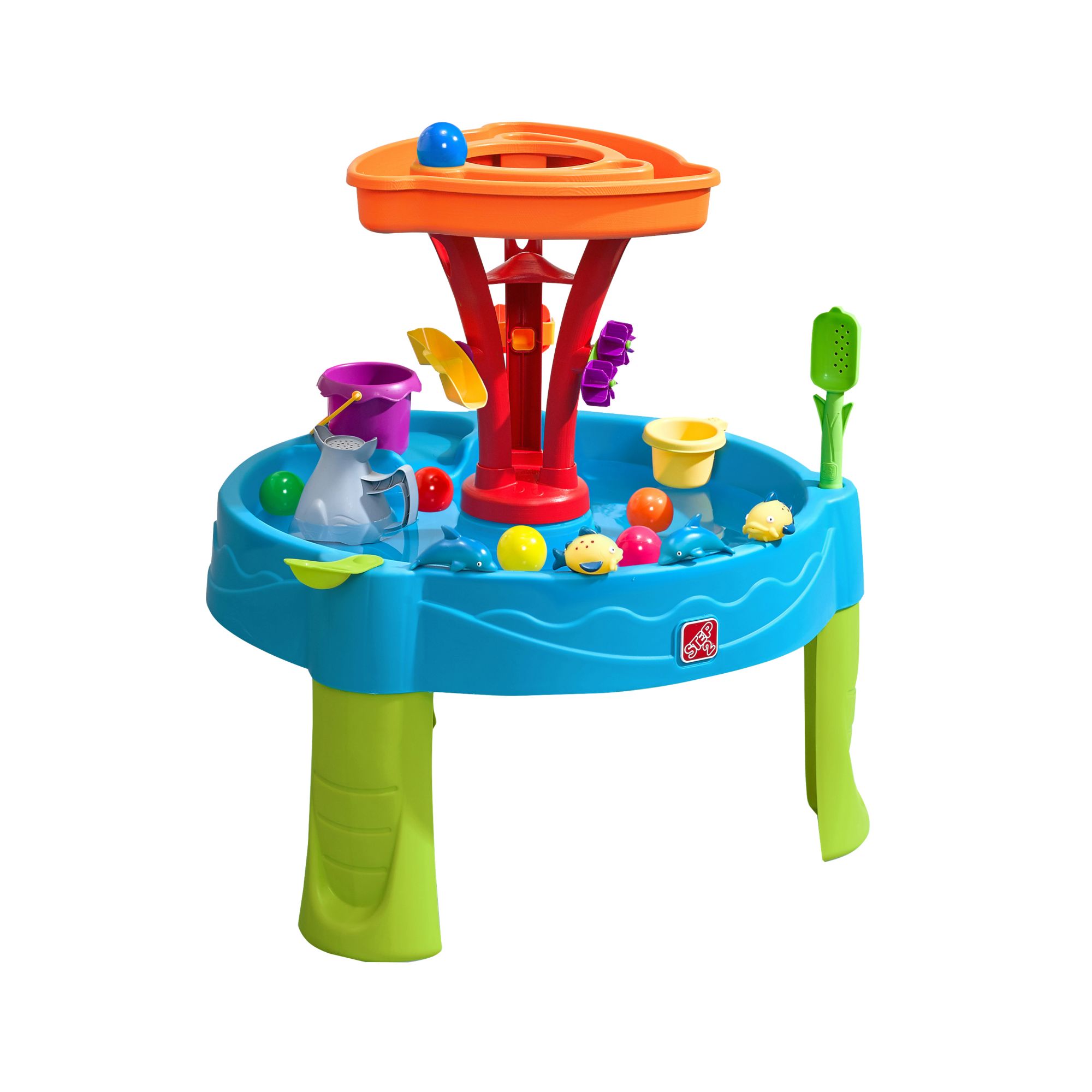 Get ready to have buckets of fun in your backyard with the Seaside Water Table by Step2. The 360° towering play table allows for a boatload of action, from ball play to swimming sea animals to waterfall effects. Just scoop up water from the pond and pour in the top tier to make a showering splash. Little ones can watch as the different put-and-place maze pieces create new waterfalls, a great way to use STEM play. From the assortment of ocean animal toys to a cat tail scoop, kids will have a ball with the included water table accessories. Made in USA of US and imported parts.