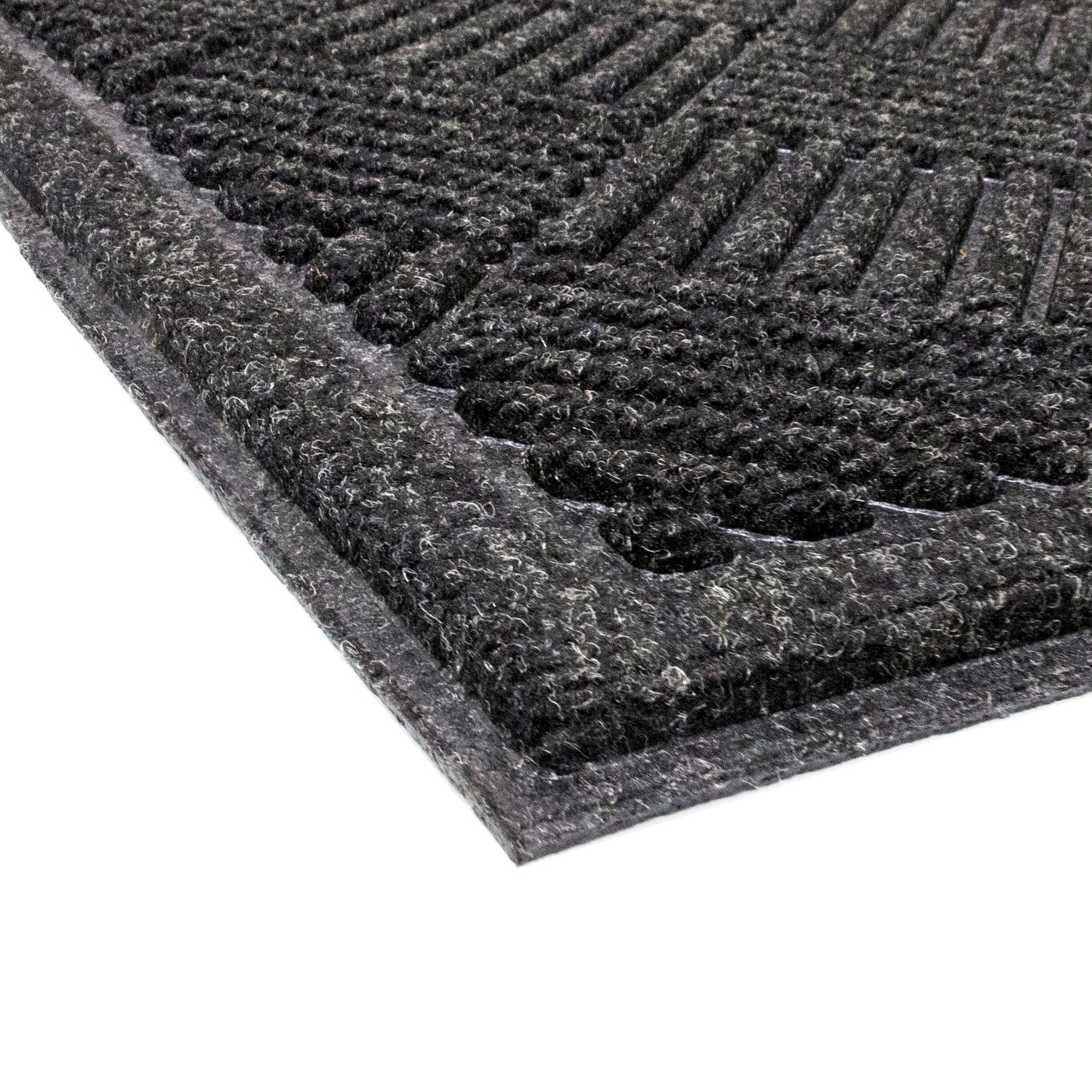 Keep your entryway clean and dry with this heavy-duty Contours doormat from Stepguard, featuring recycled rubber backing and a stylish molded pattern on the surface. The needle punch surface is made from recycled PET bottles, with molded channels helping scrape and trap dirt and debris from footwear, while fabric absorbs moisture. Recycled rubber backing is durable and weather-resistant so it can be used outside all year long. Recycled rubber backing protects floors from wear, and grips surfaces to minimize slippage. The mat is attractive and stylish - an ideal mat to place outside your front door to absorb snow and moisture, protecting floors inside. Add this rectangular-shaped mat to your doorway for a stylish edge. Made in the USA, it’s crafted from crush-, fade-, and mold-resistant recycled plastic PET bottles with a non-slip rubber backing and a low-profile design– at just 0.40" tall– that crouches under most swinging doors. A perfect stylish accessory for entryways, patios, porches, verandas, balconies, and garages. Durable construction and attractive design make it suitable for residential and commercial applications.