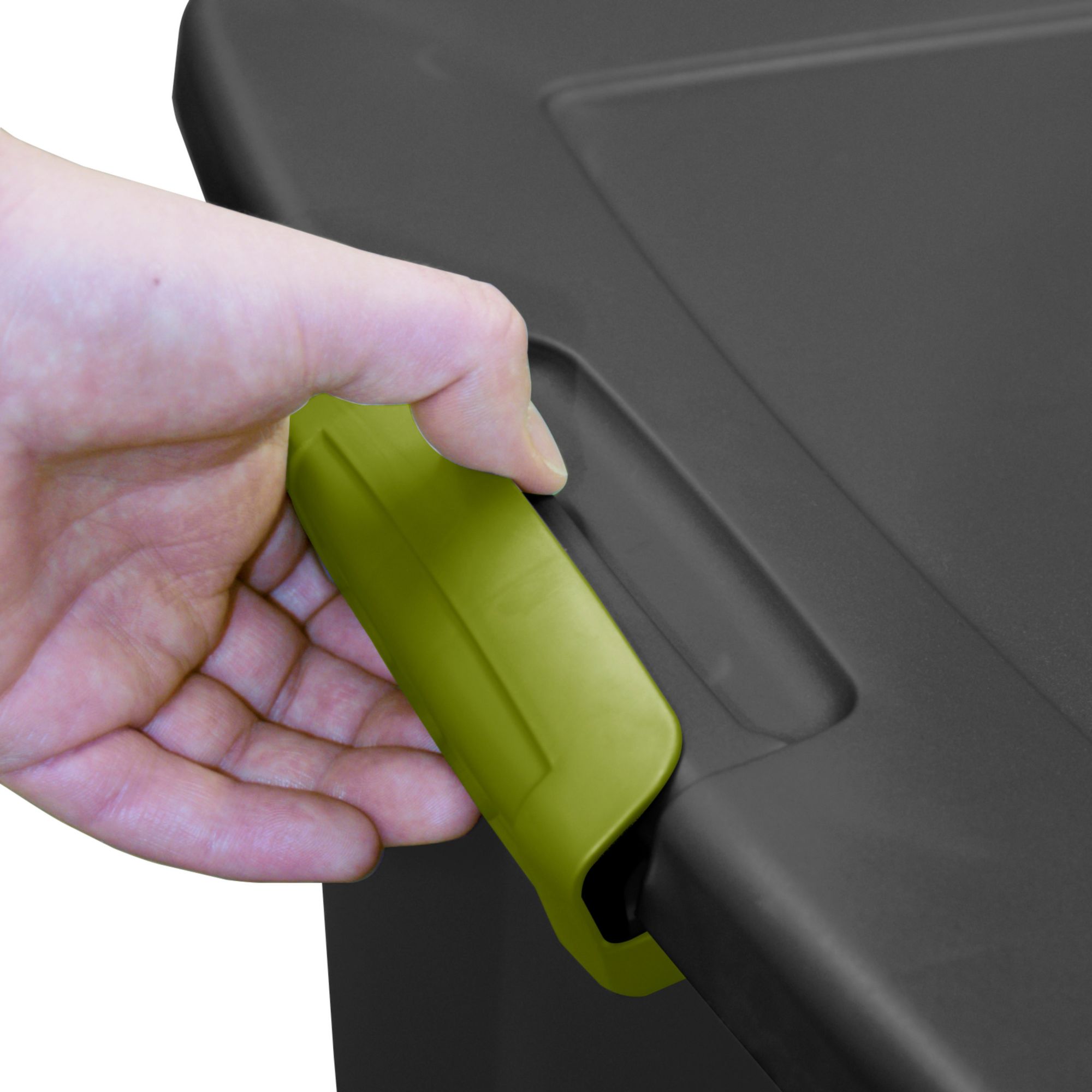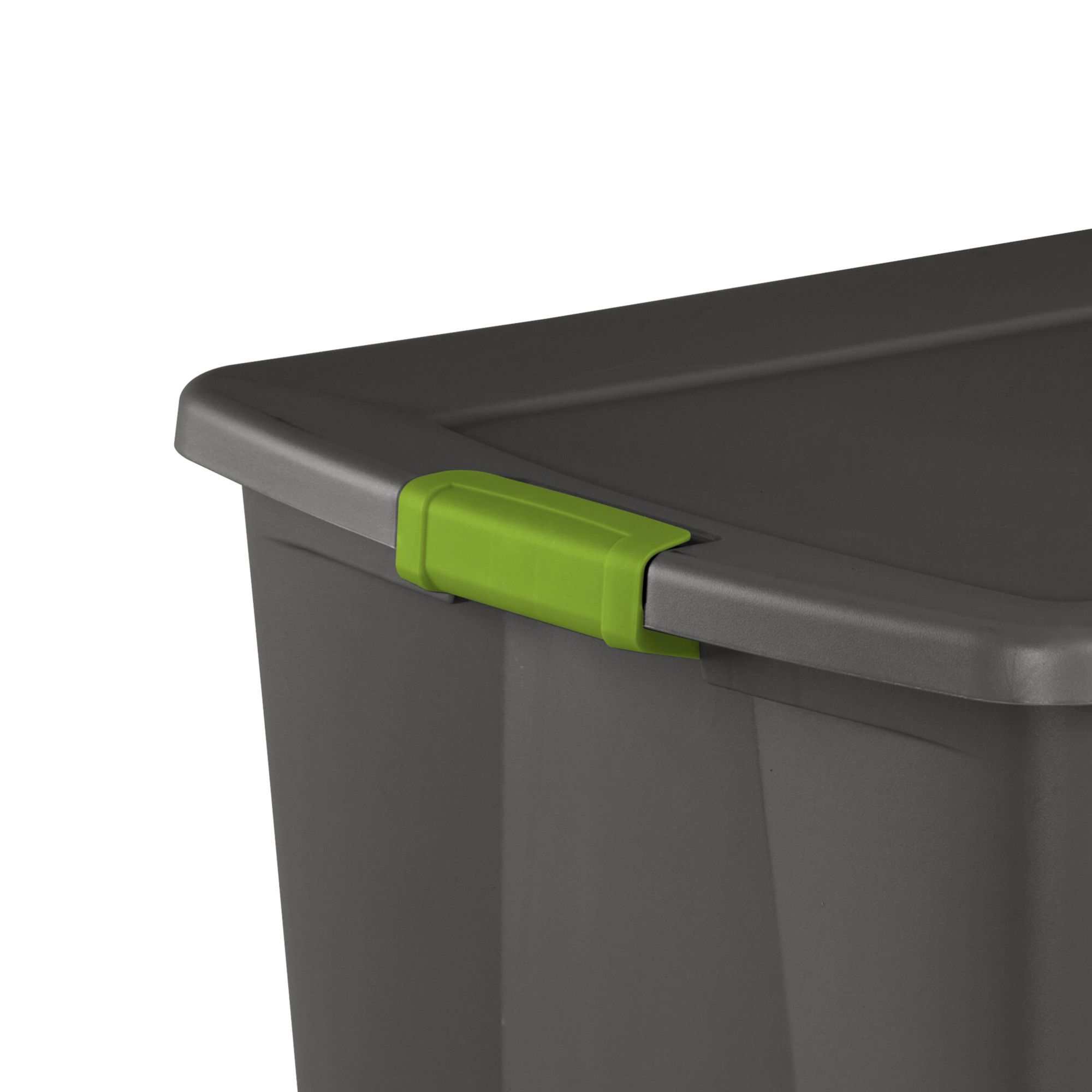 Need help getting organized? Step up to the Sterilite 45 Gallon Wheeled Latch Tote, which is equipped with wheels, making it the ideal portable solution, even for heavier loads. Contain and conceal sporting gear, camping supplies, bedding, seasonal items and more in this large capacity tote. Durable construction and contemporary styling make this a great solution for storing household items away in the garage, basement or attic. Heavy duty latches ensure lid remains securely attached to the base, keeping contents safely stored inside. Multiple totes are able to stack neatly on top of each other while contoured end panels create a surface for comfortable lifting.