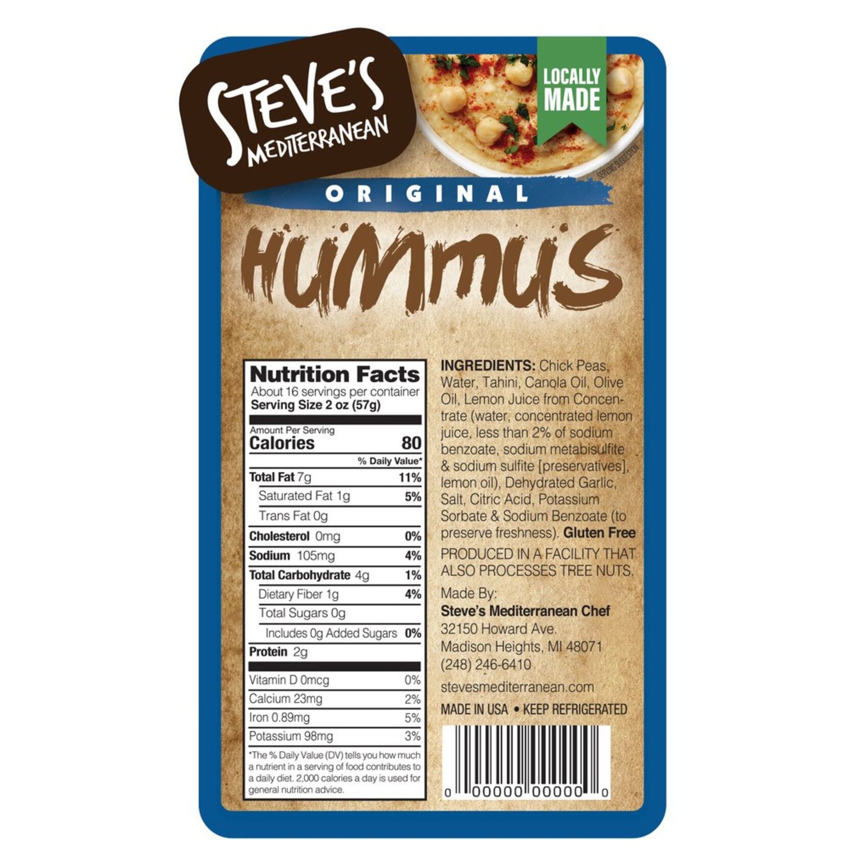 The story of Steve’s Mediterranean Chef began many years ago in Lebanon with the Chammas family gathering every Sunday to enjoy traditional Mediterranean dishes perfected and passed down through generations. Steve's is committed to bringing you a delicious, fresh, and authentic product every time. These delicious products are handmade and packaged with care locally, in Madison Heights, MI. Today, Steve’s Mediterranean brings generations old, authentic Lebanese recipes to local grocery stores. Steve's never sacrifices quality for the sake of convenience. This brand has a special connection to their food and how it’s made and are committed to delivering real food made by real people. Steve’s Mediterranean Original Hummus and Garlic Sauce will be the star of your next meal or snack.