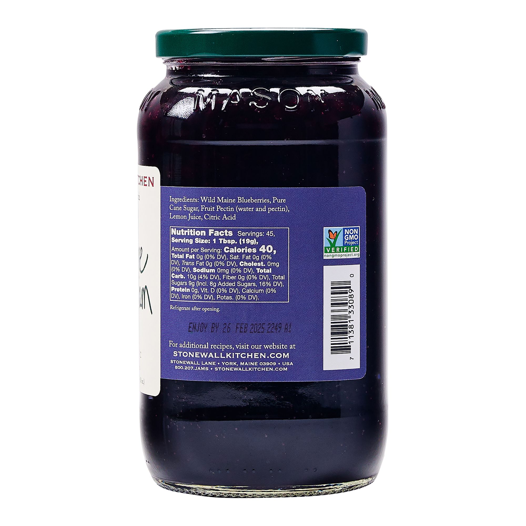 Ingredients: Wild Maine Blueberries, Pure Cane Sugar, Fruit Pectin, Lemon Juice, Citric Acid.