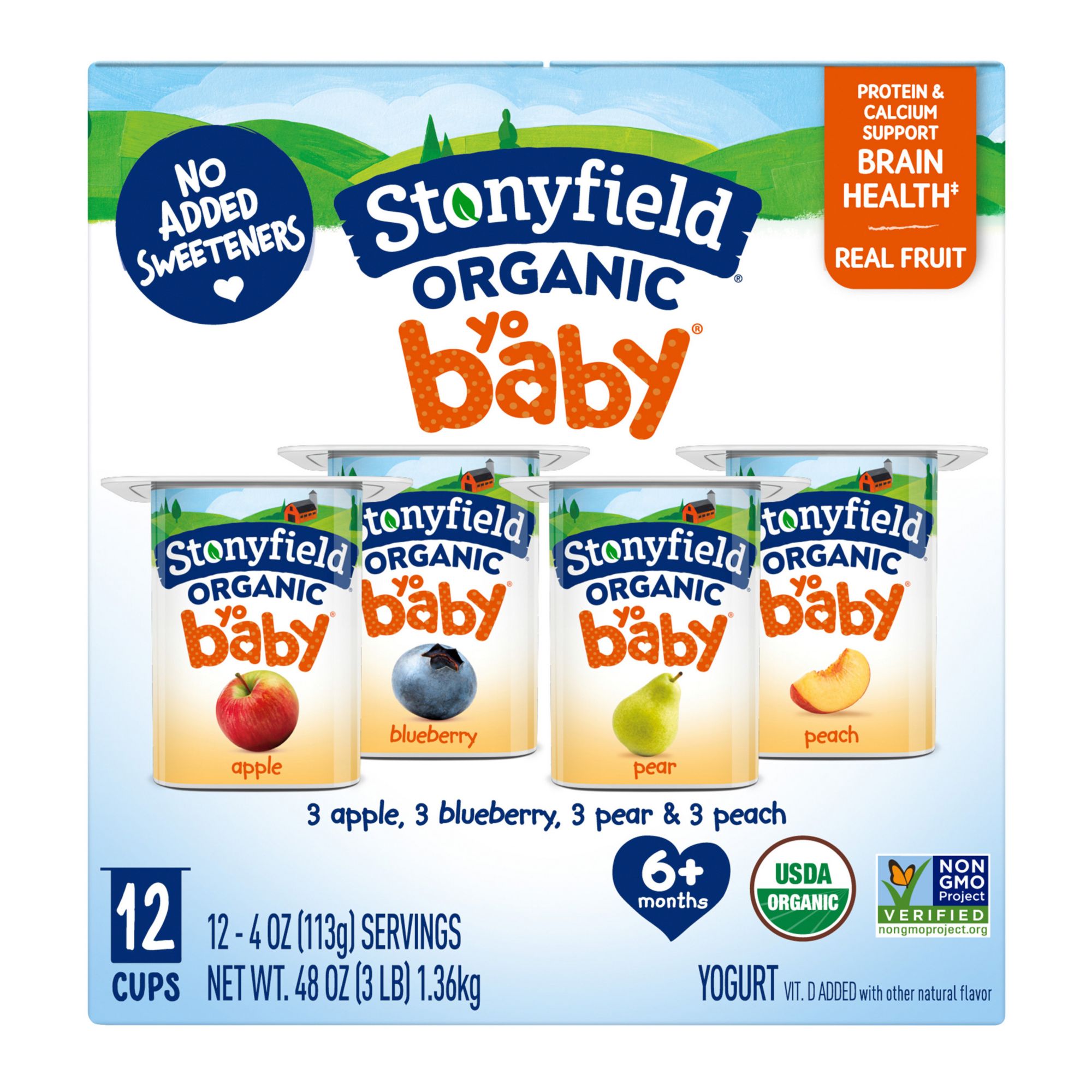Stonyfield Organic YoBaby Whole Milk Yogurt with Probiotics, Variety Pack, Apple, Blueberry, 12 pk./4 oz.