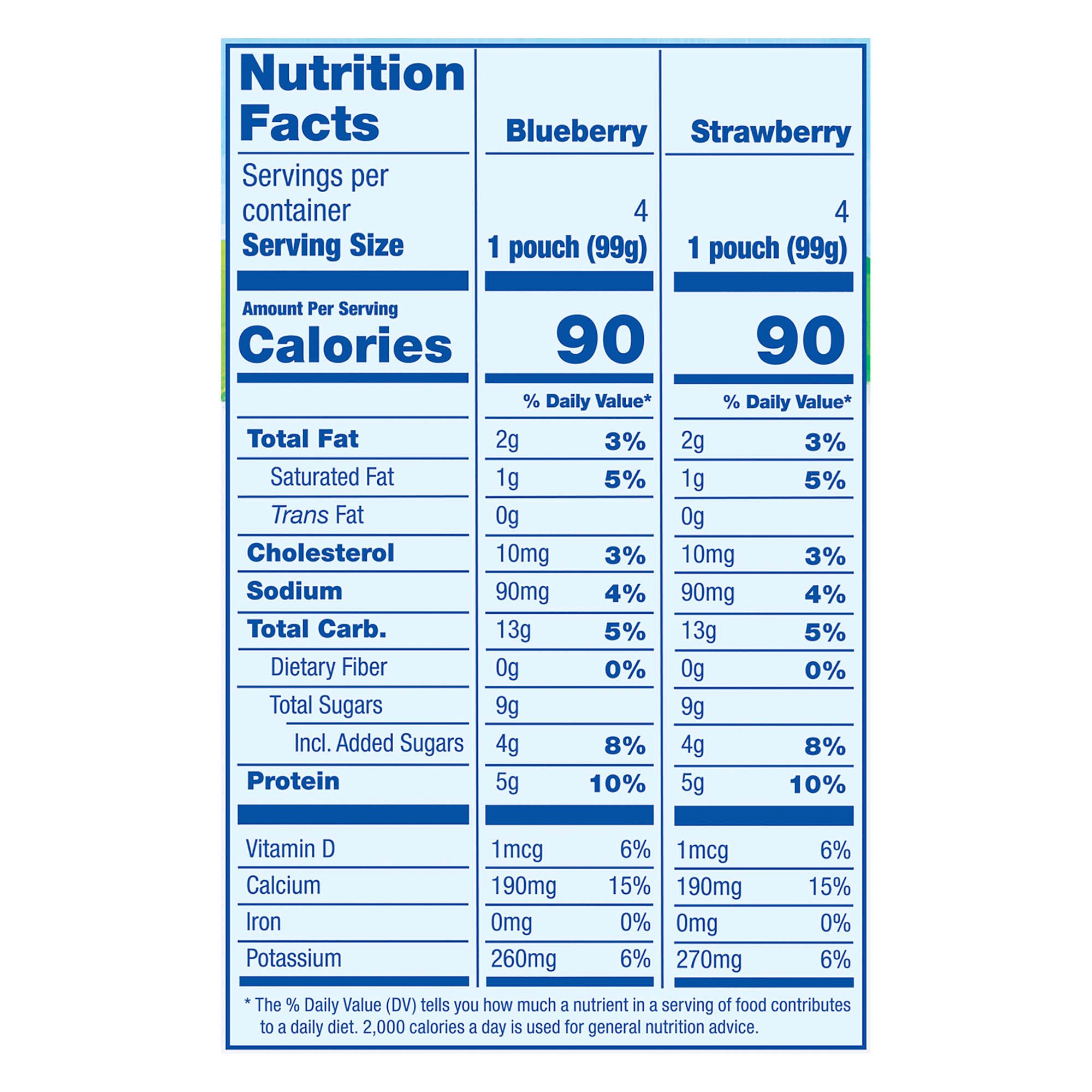 Includes 4 strawberry and 4 blueberry yogurt pouches