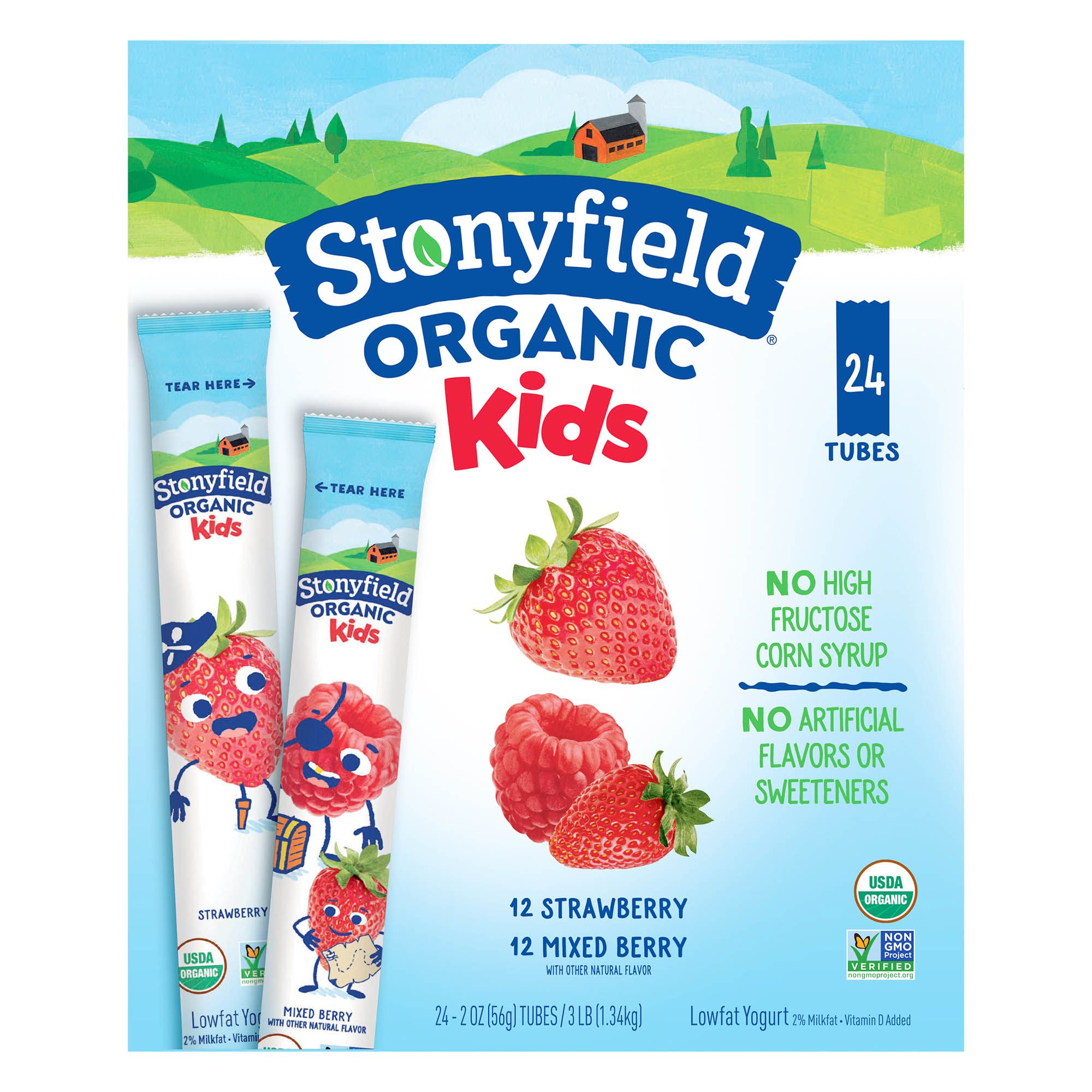(1) Stonyfield Organic YoKids Squeezers, 24 ct., Pouches, 8 ct., OR Smoothie Strawberry with Probiotics, 12 pk.