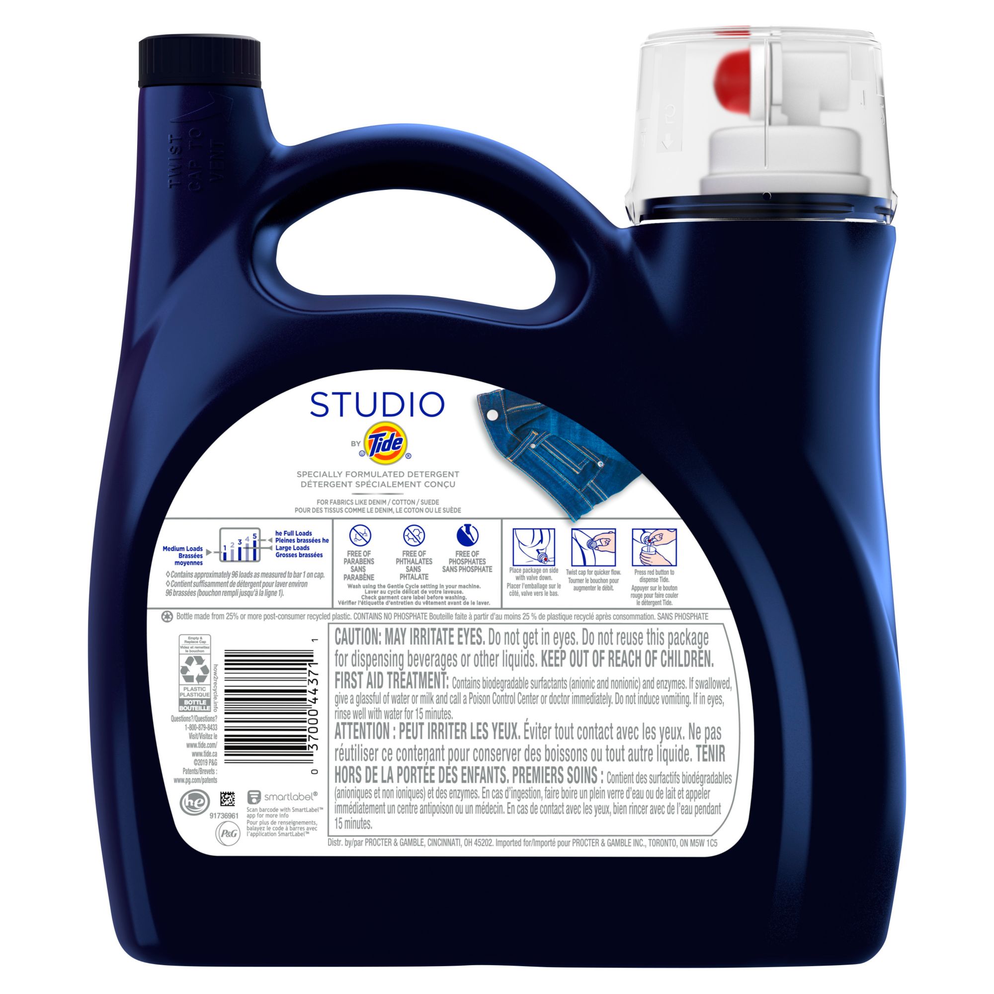 New Studio by Tide laundry detergent for darks and colors keeps your favorite clothes looking newer, longer. Studio by Tide’s gentle clean preserves the color and feel of your denim, cotton and fleece clothing. This liquid laundry detergent trims down stray fibers to improve garment quality, removes chlorine from water to prevent fading, and lifts body soils from fabrics to refresh your clothes. Protect your favorite clothes from pilling, discoloration and fading with Studio by Tide.
