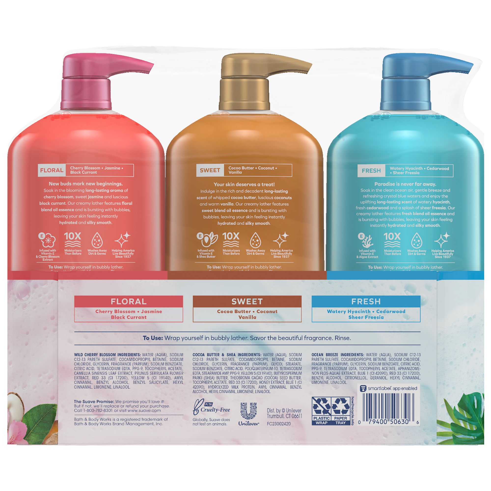 Pack of three body wash scents - Suave Ocean Breeze, Suave Cocoa Butter & Shea, and Suave Wild Cherry Blossom