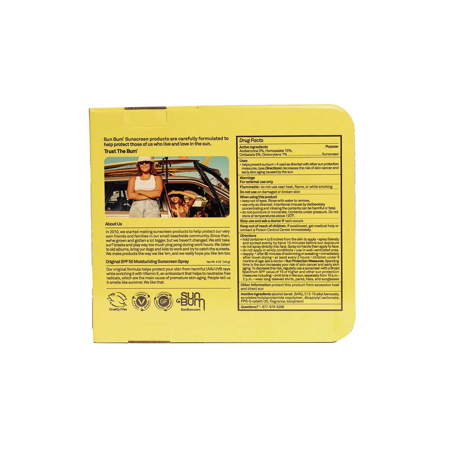 This easy-to-use, ultra sheer/dry touch continuous spray formula will protect your skin from harmful UVA/UVB rays while enriching your skin with Vitamin E, an antioxidant that helps to neutralize free radicals, which are the main cause of premature skin aging. Dermatologist and Sonny approved, this non-comedogenic sunscreen delivers UVA/UVB protection and is packed with Vitamin E. This oil-free, water-resistant and Hawaii 104 Reef Act Compliant SPF 50 Spray is great for all skin types. Trust the Bum - What does that mean? It means trust Sun Bum, the ones who live on the beach and need products that work on the most intense days in the sun. The simple truth is, when you make products to protect the ones you love, you make 'em better.