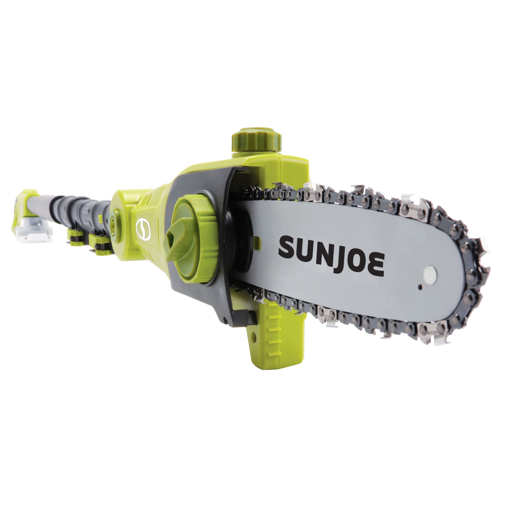 See it? Saw it. With Sun Joe. Cut your tree trimming tasks down to size and tackle those tough-to-reach branches with ease with this cordless pole chainsaw. Powered by their exclusive 24V iON+ battery system, the powerful lithium-ion rechargeable battery lets you make up to 32 cuts of 4" x 4" pine on a single charge and charges up in just 80 minutes with the included charger. It offers all of the power and performance of gas with the best of cordless convenience for all your outdoor chores without any emissions, fumes, fuss or tangled extension cords.