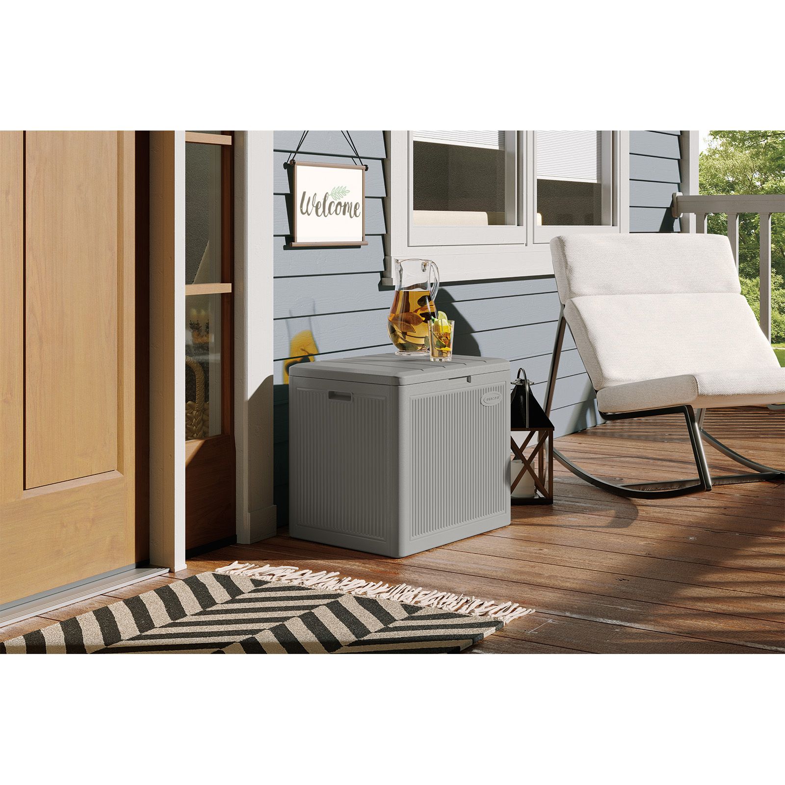 The Suncast 22 Gal. Small Reeded Deck Box is stylish, functional and perfect for stashing away outdoor accessories on you patio or cold weather gear inside your laundry room or garage. It features built-to-last, weather-resistant resin construction that allows for year-round use and easy maintenance. Regardless of your unique needs, this stylish deck box will make a great addition to your home.