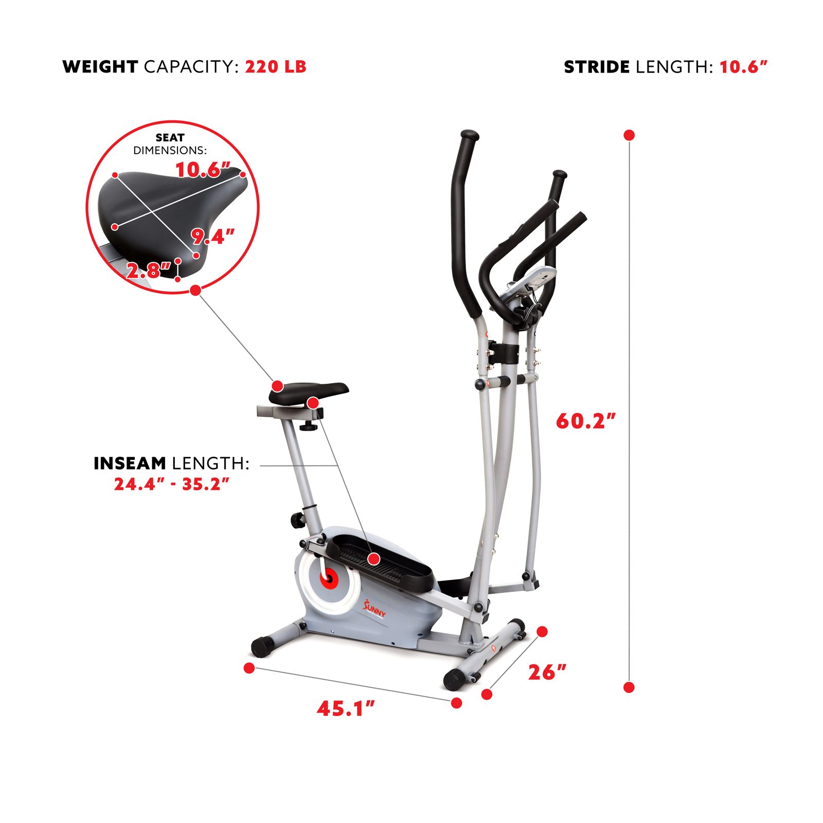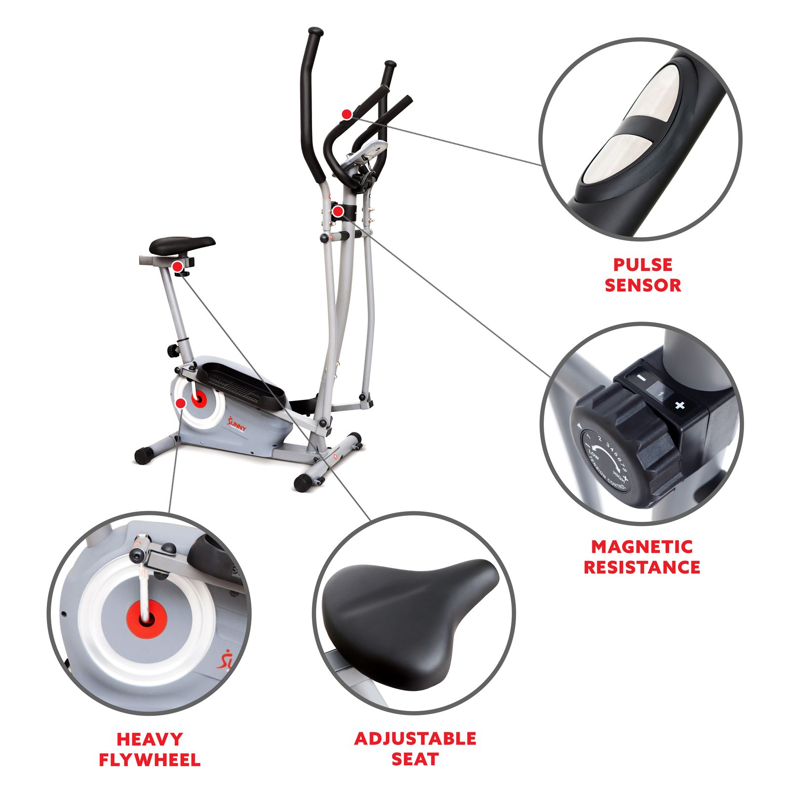 Sunny Health & Fitness SF-E322004 Essential Interactive Series Seated Elliptical