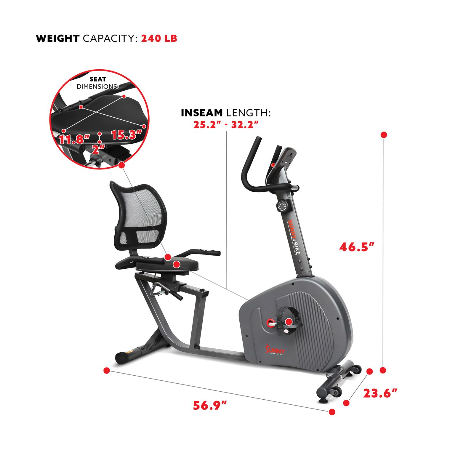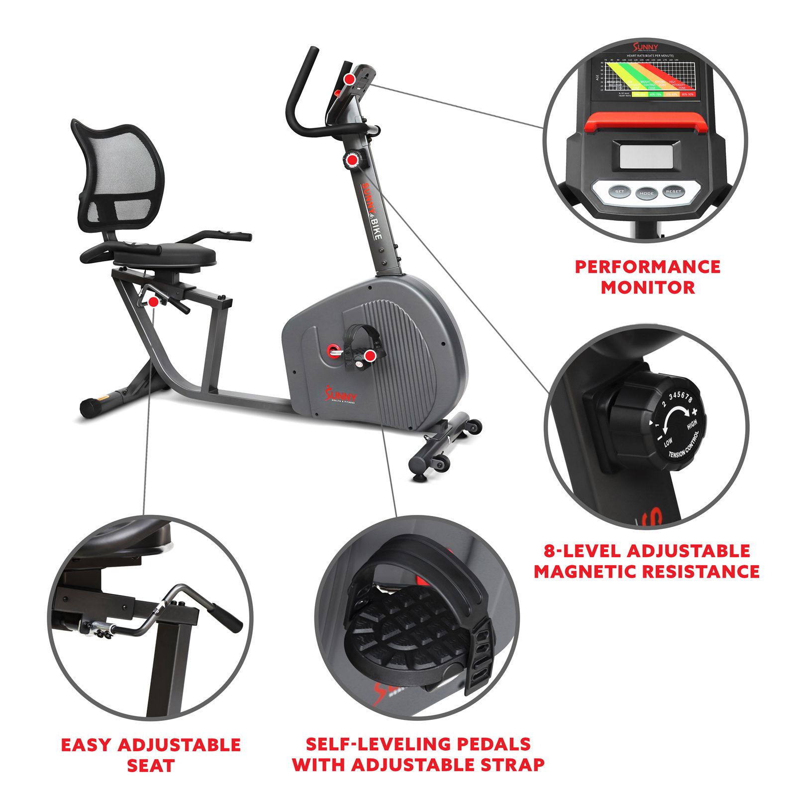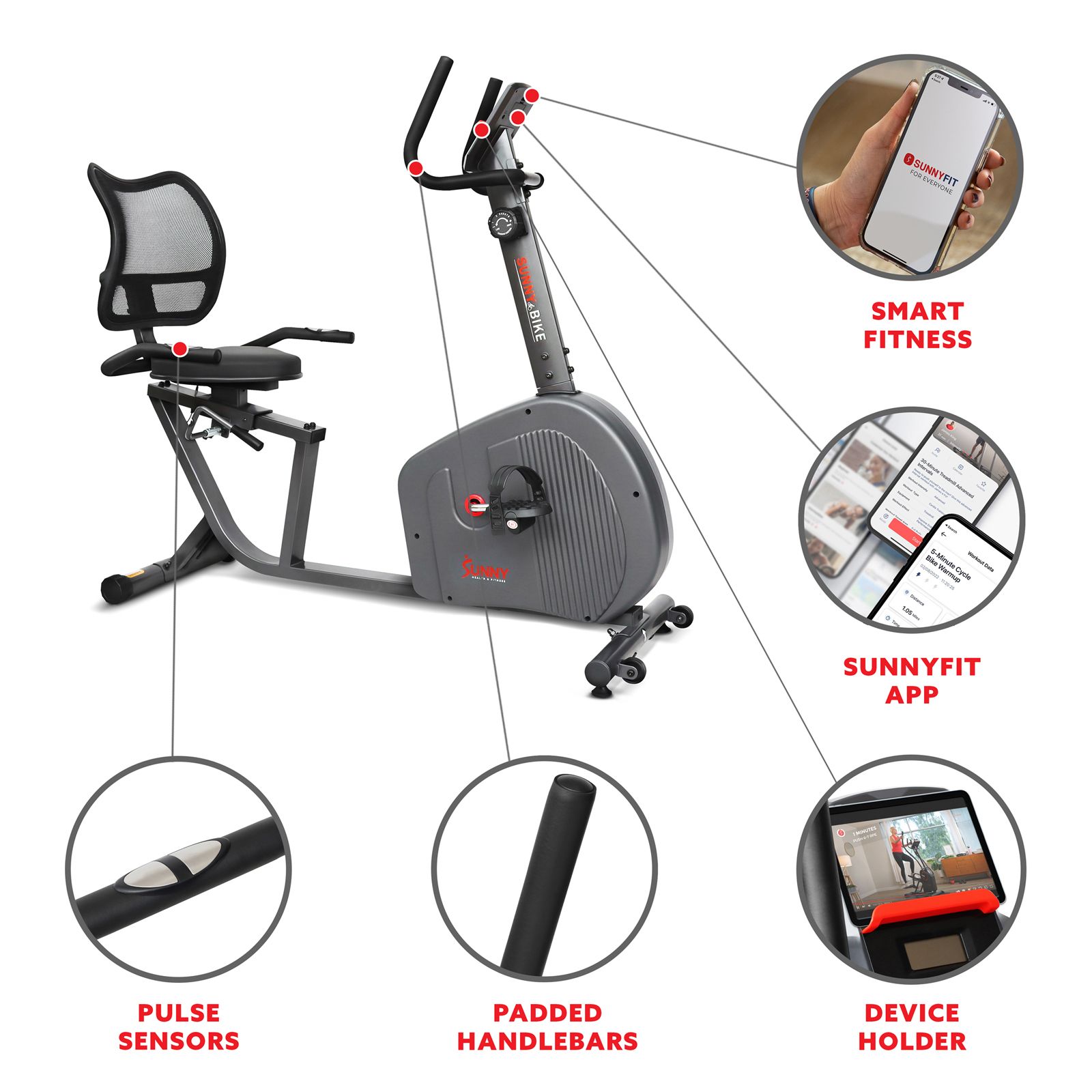 Sunny Health & Fitness SF-RB421004 Endurance Series Magnetic Smart Recumbent Bike