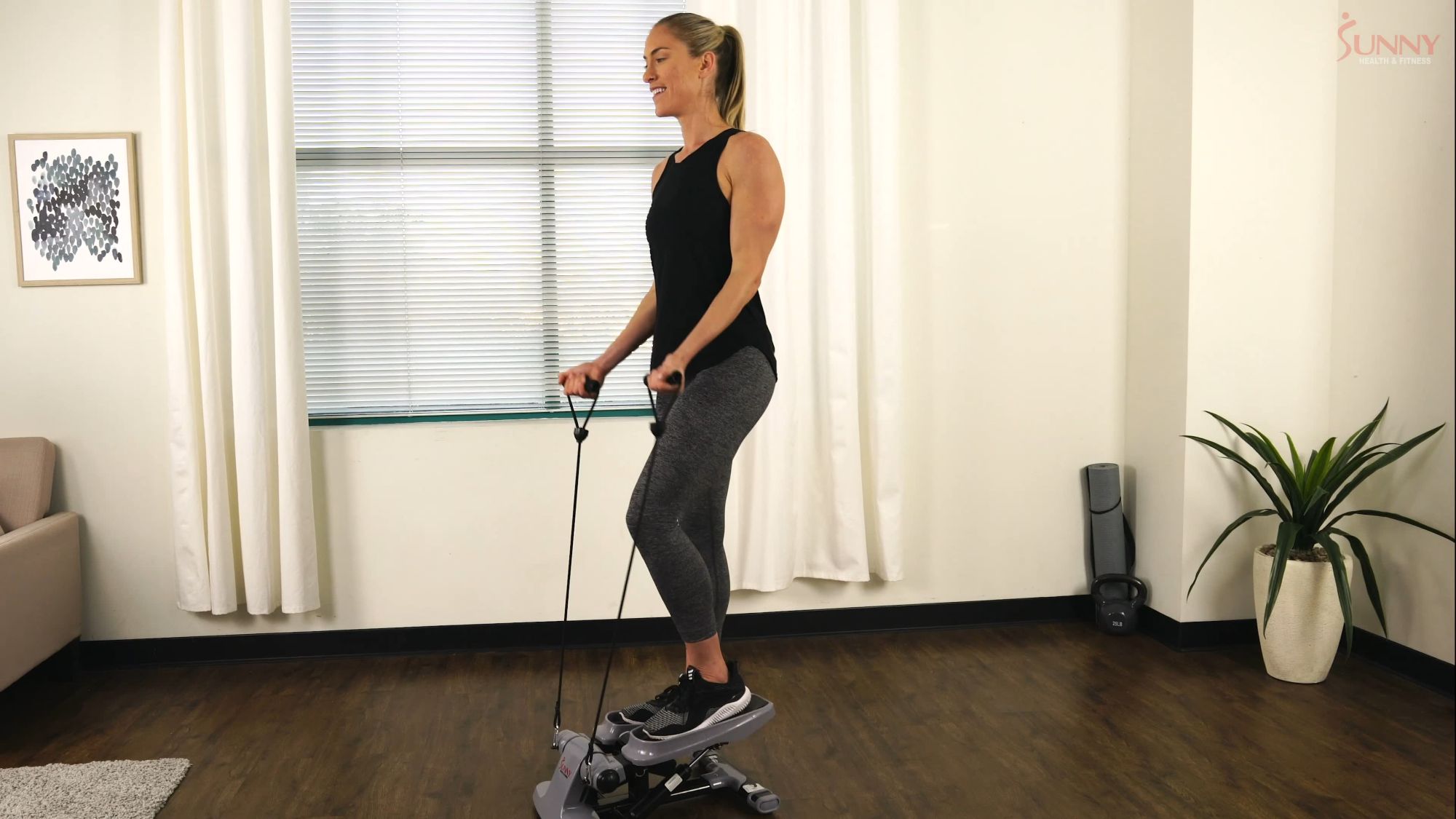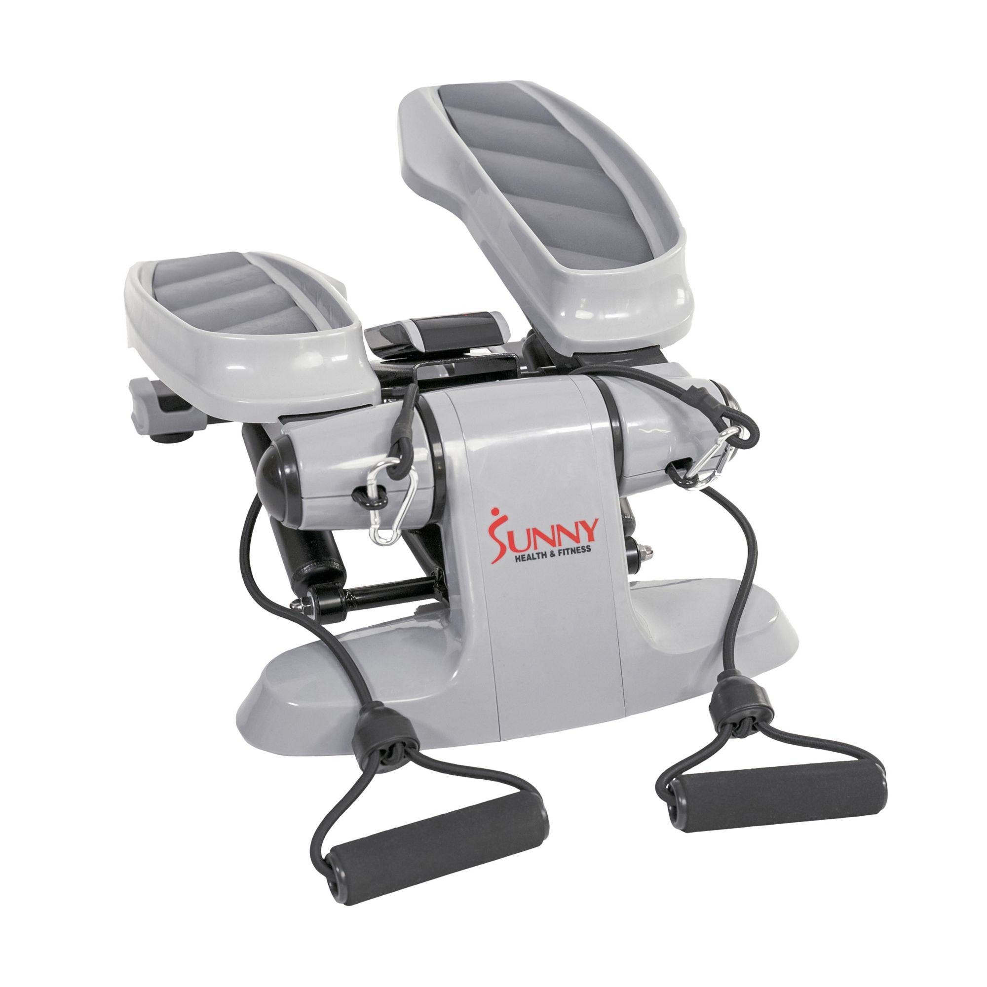 You can achieve a full-body, low-impact workout with minimal space by using the Sunny Health and Fitness SF-S0870 Versa Stepper. We've designed this stepper with a wide-body design and thick stabilizing feet to ensure maximum stability during your workout. Easily maintain balance on the ergonomic foot pedals that feature textured footpads. The quiet dual hydraulic-drive system, which supports up to 245 lbs., is designed to condition your glutes, thighs, and calves as you step up and down. A glance at your time, calories burned, steps taken, and steps per minute with the convenient LCD. Attach the included removable resistance bands to perform upper-body exercises while you move. Feel confident in every step with the Sunny Health and Fitness SF-S0870 Versa Stepper.