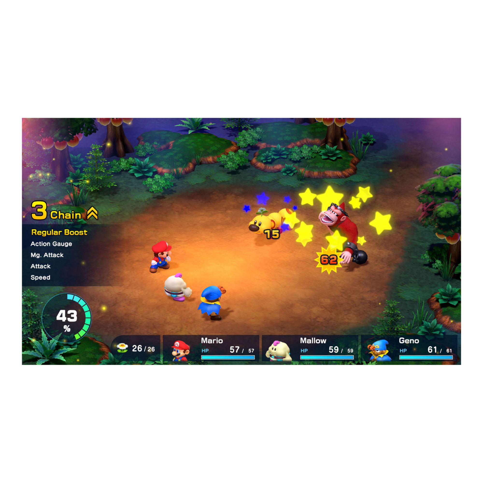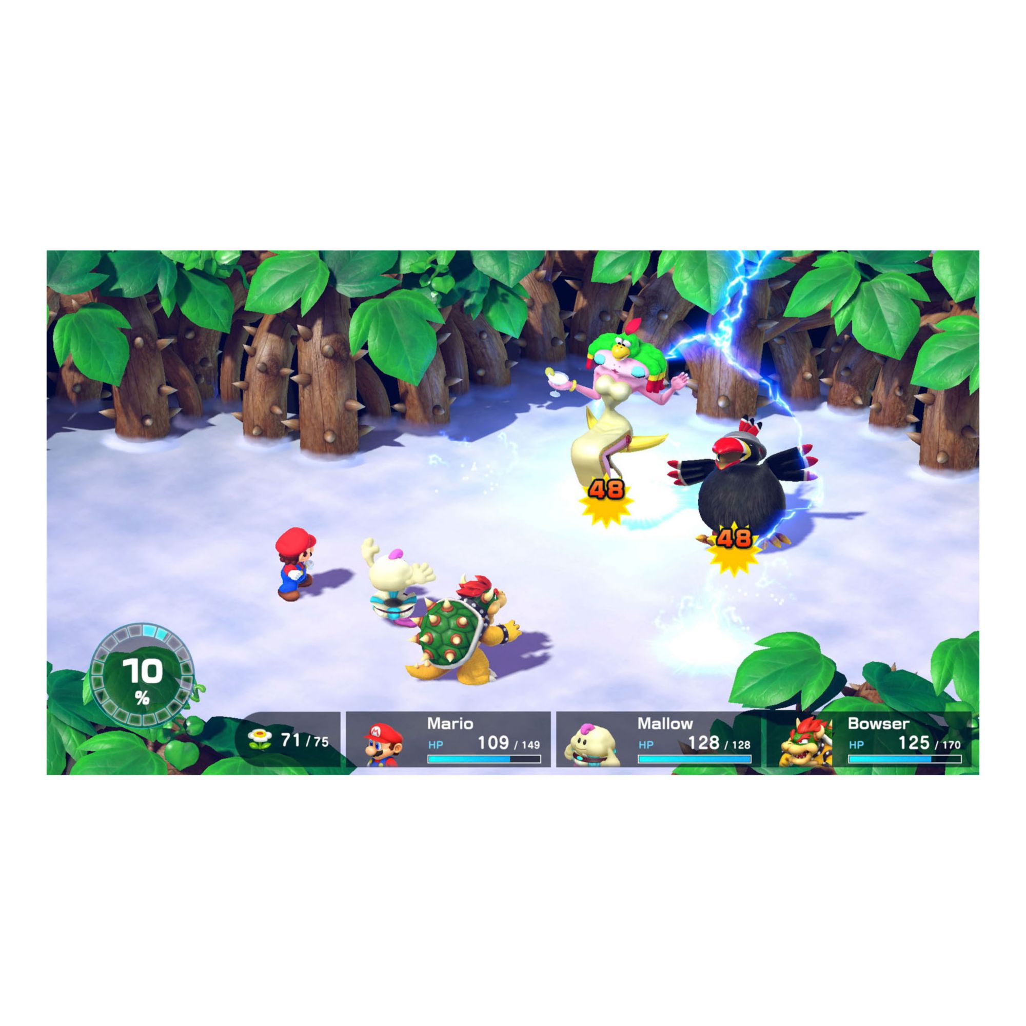 This colorful RPG has updated graphics and cinematics that add even more charm to the unexpected alliance between Mario, Bowser, Peach, and original characters Mallow and Geno Enter (or revisit) this world of eccentric allies and offbeat enemies in an RPG for everyone