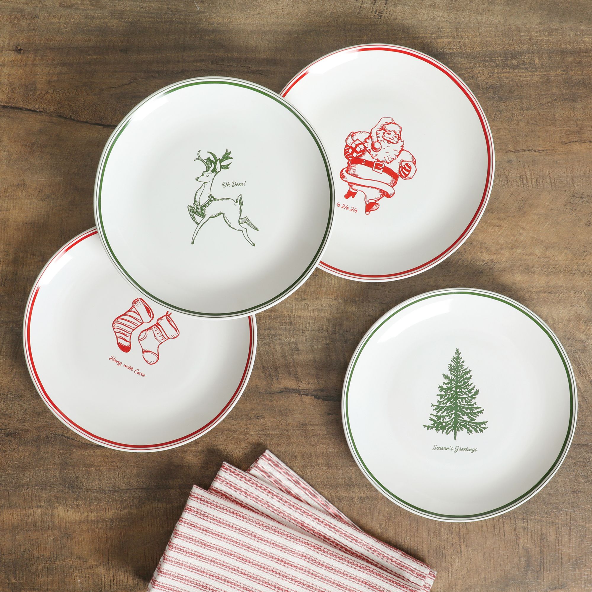 Four assorted designs spread the holiday cheer when dining and entertaining at home