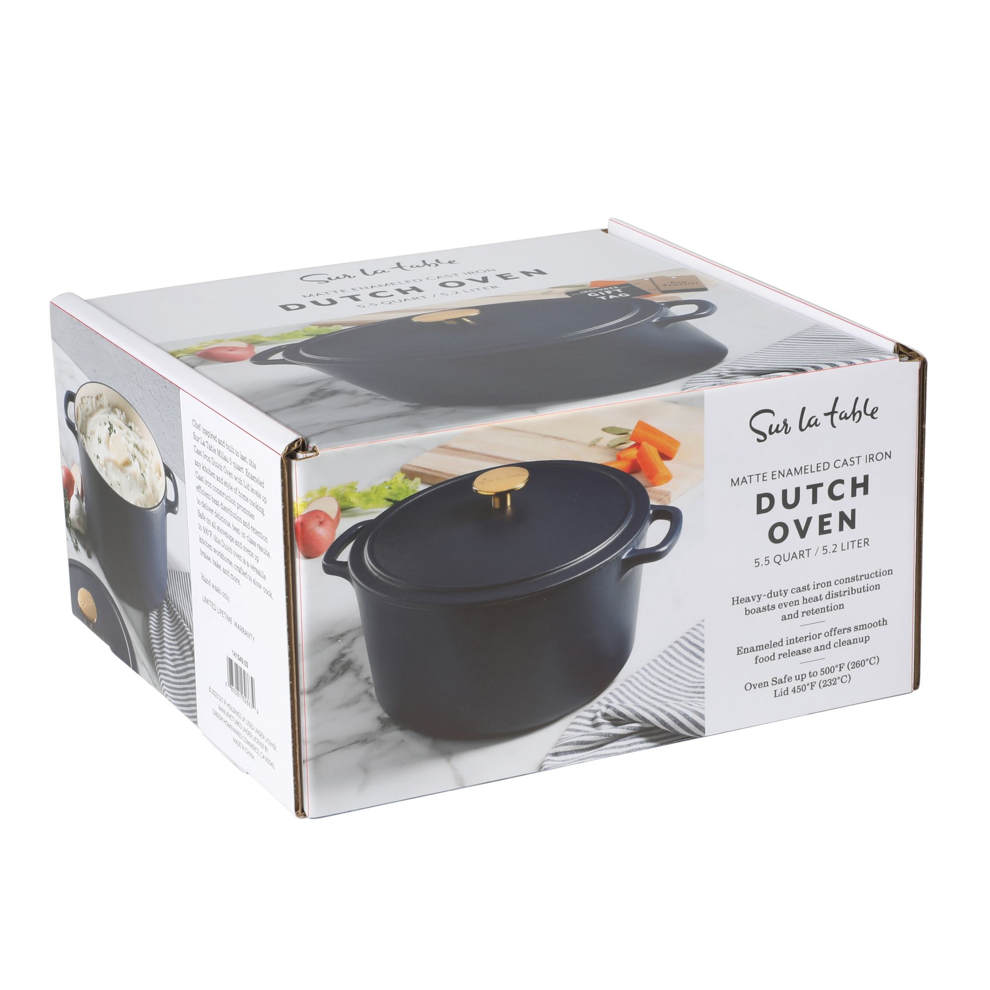 Includes Sur La Table 5.5 qt. enamel cast iron Dutch oven with lid