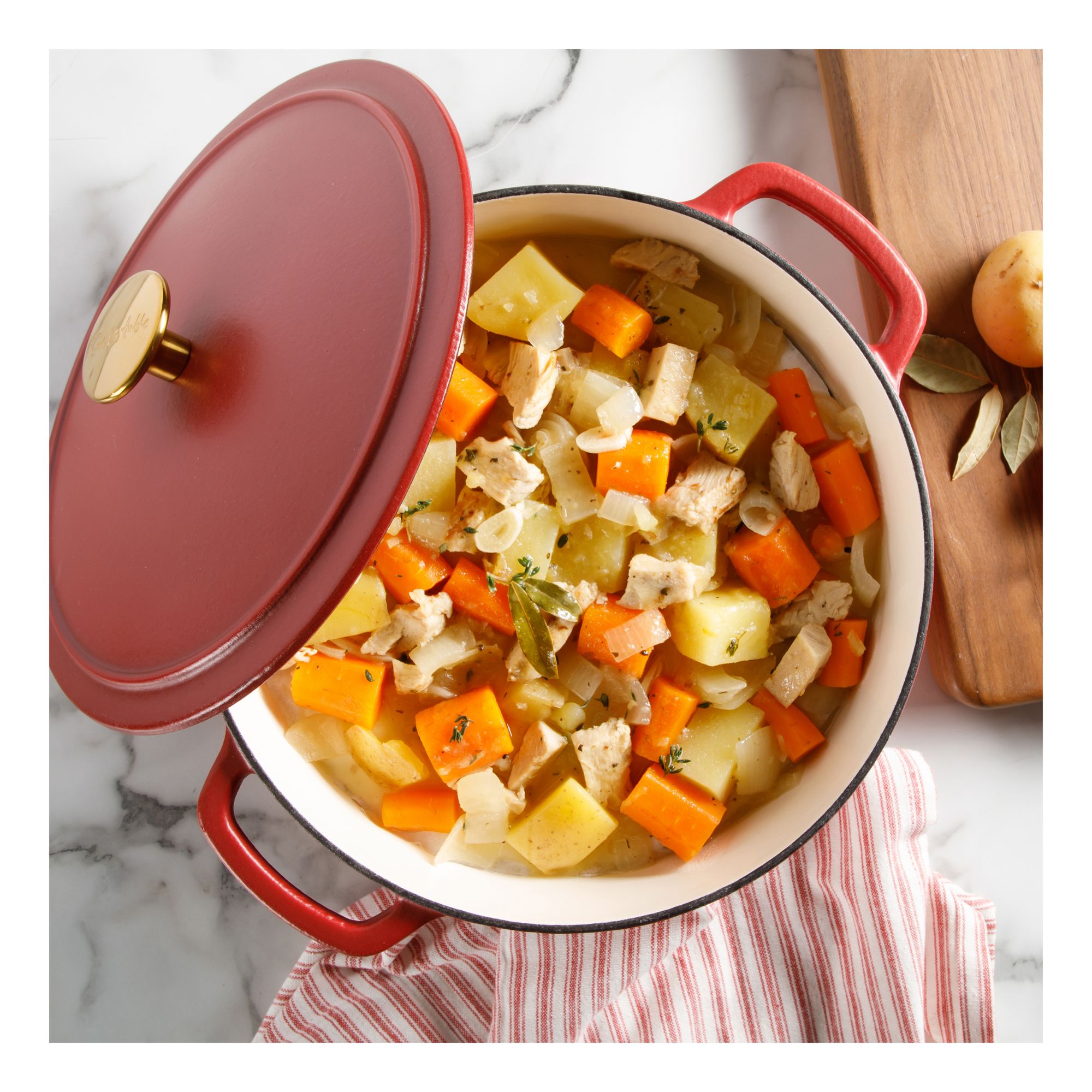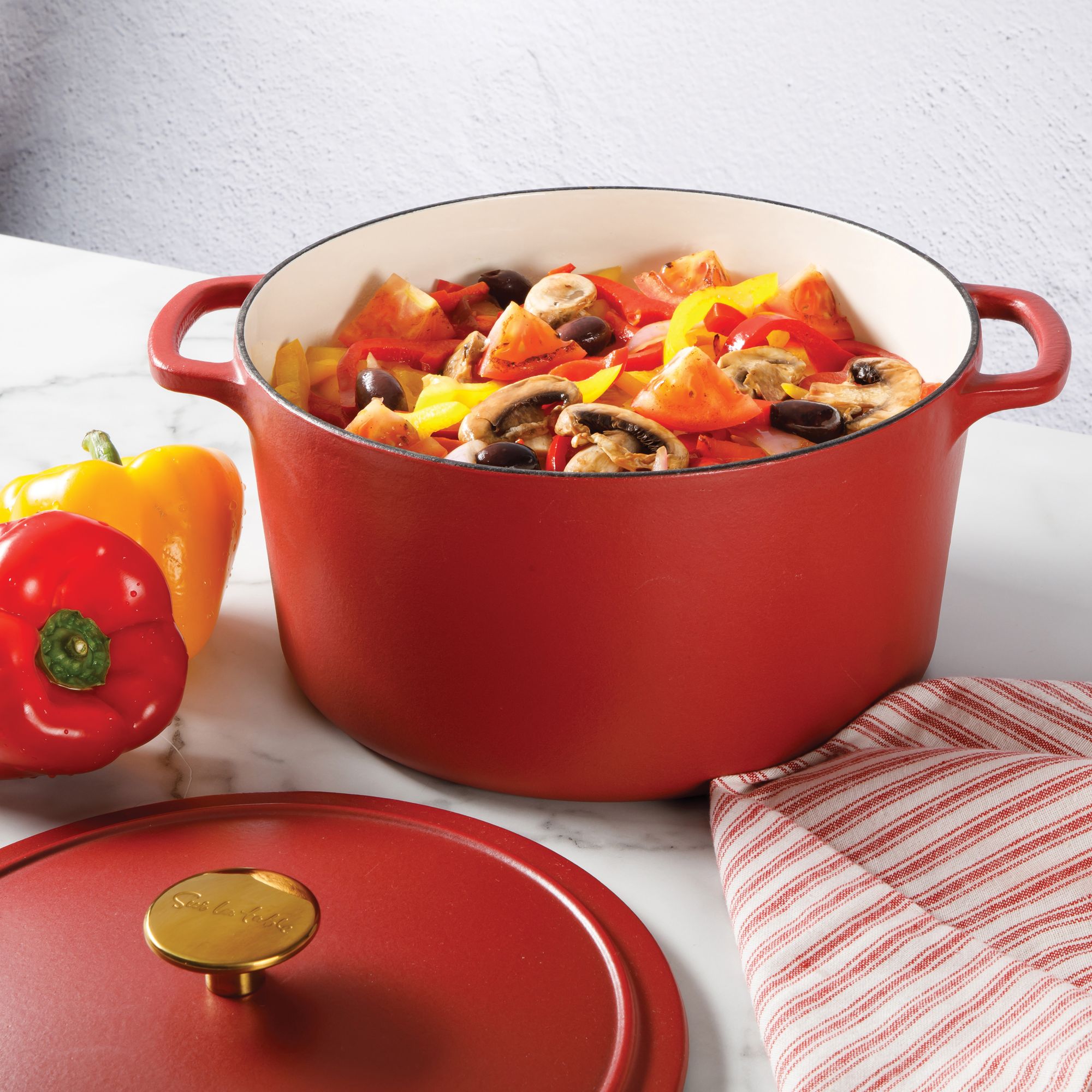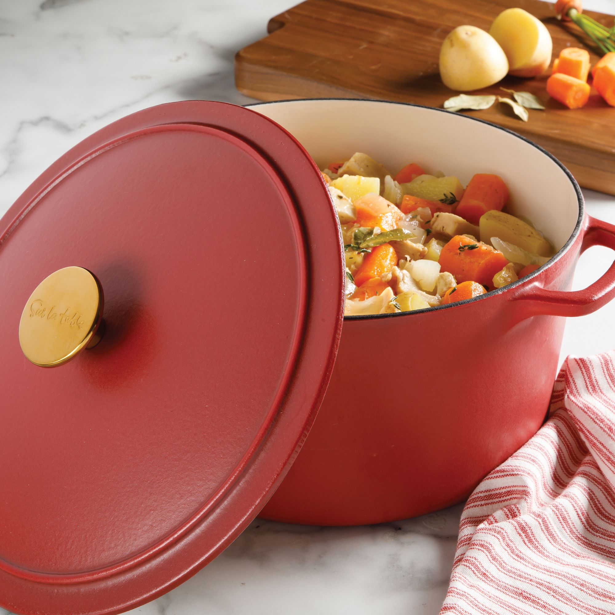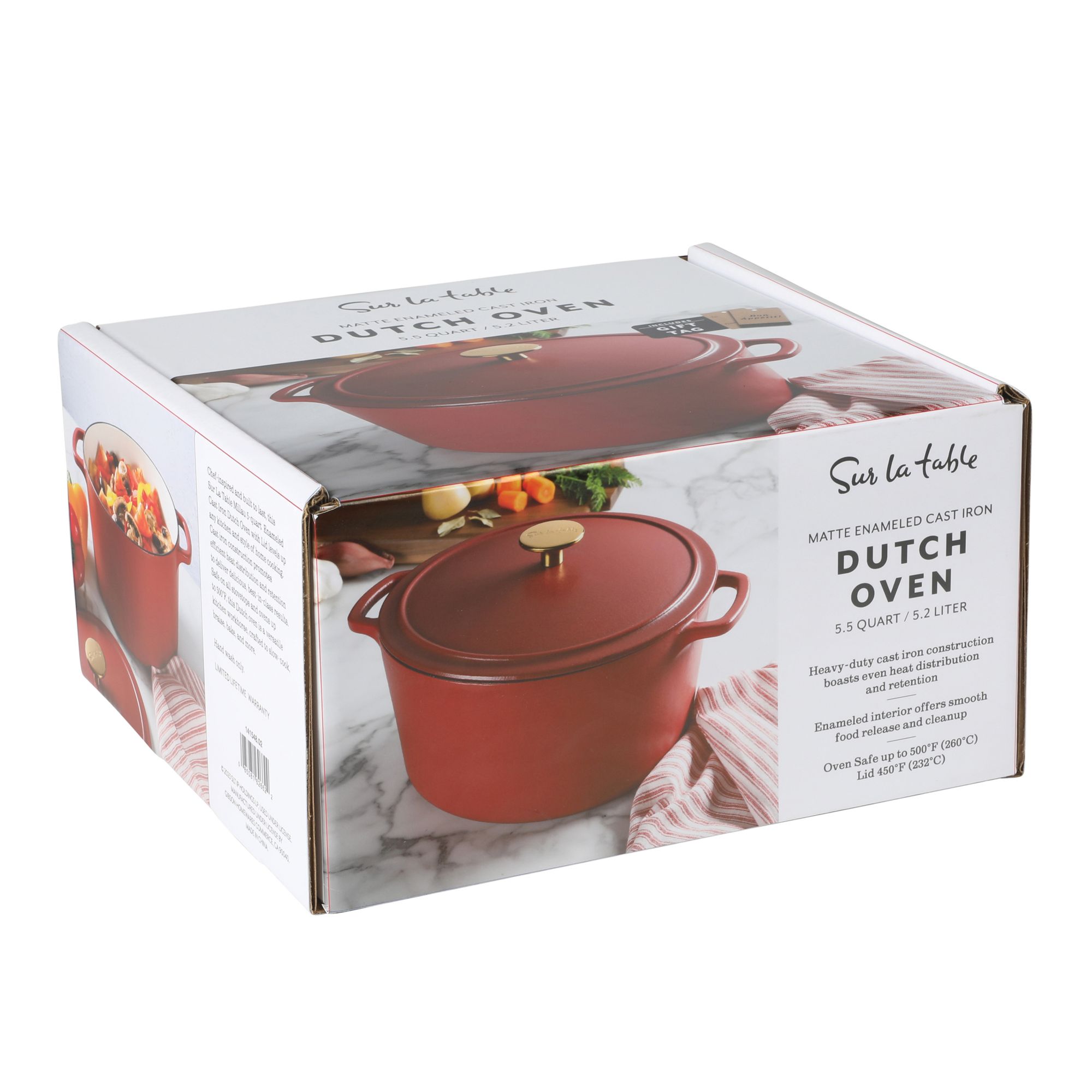 Includes Sur La Table 5.5 qt. enamel cast iron Dutch oven with lid