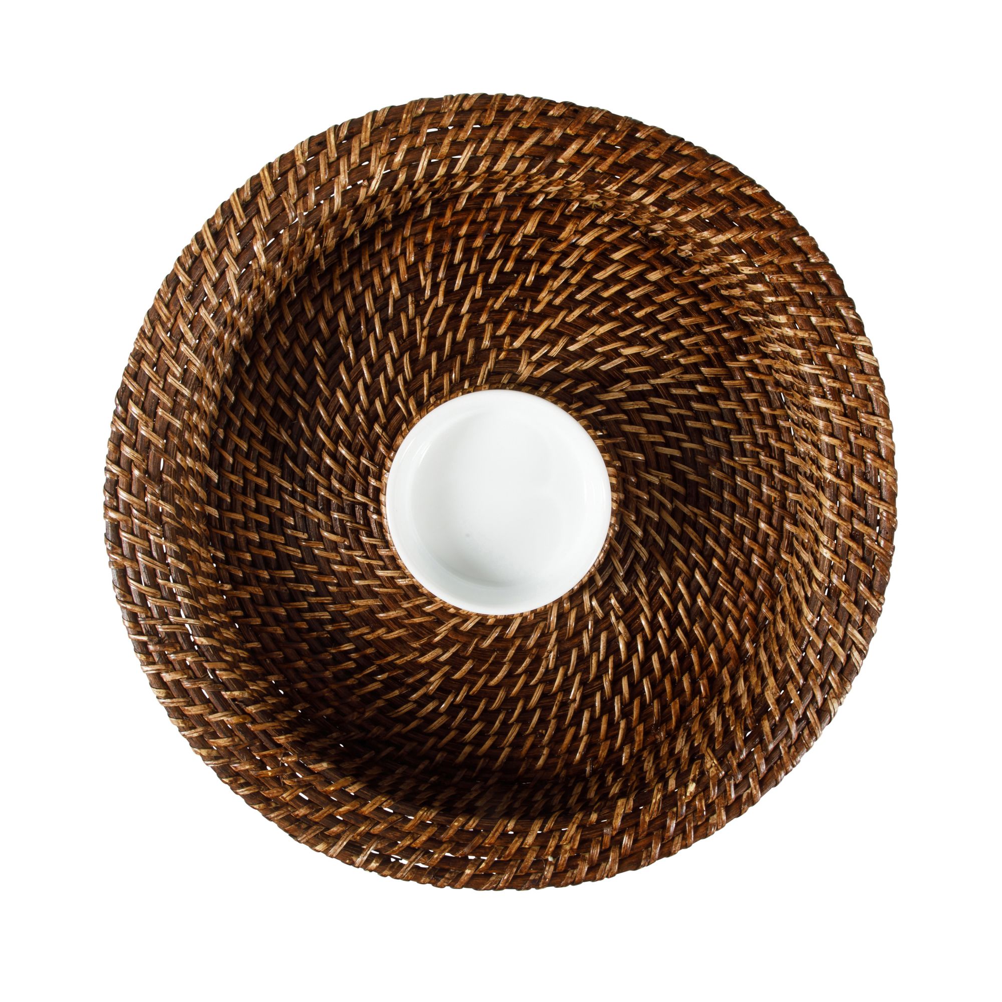 Sur La Table Rattan Chip and Dip Set with Stoneware Bowl