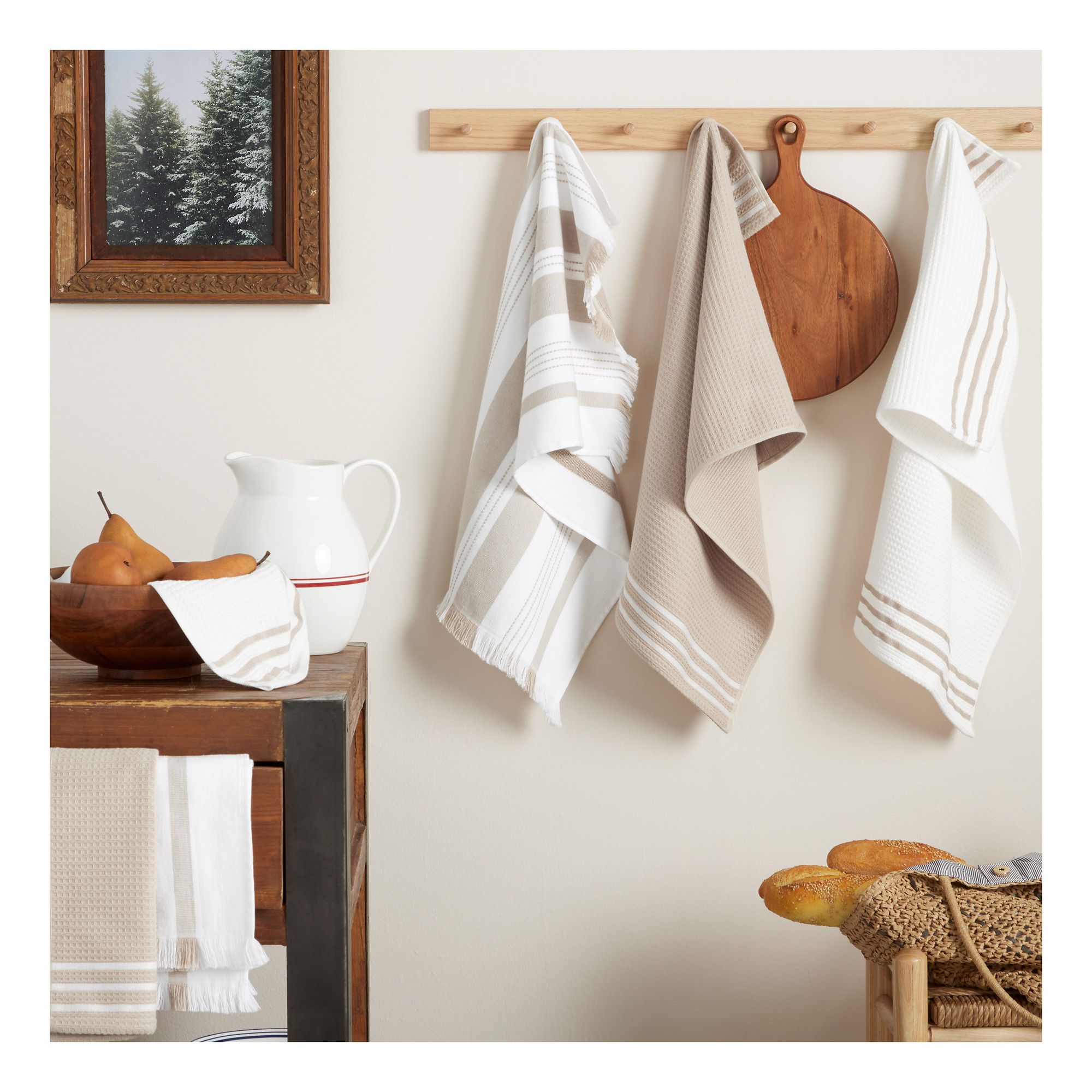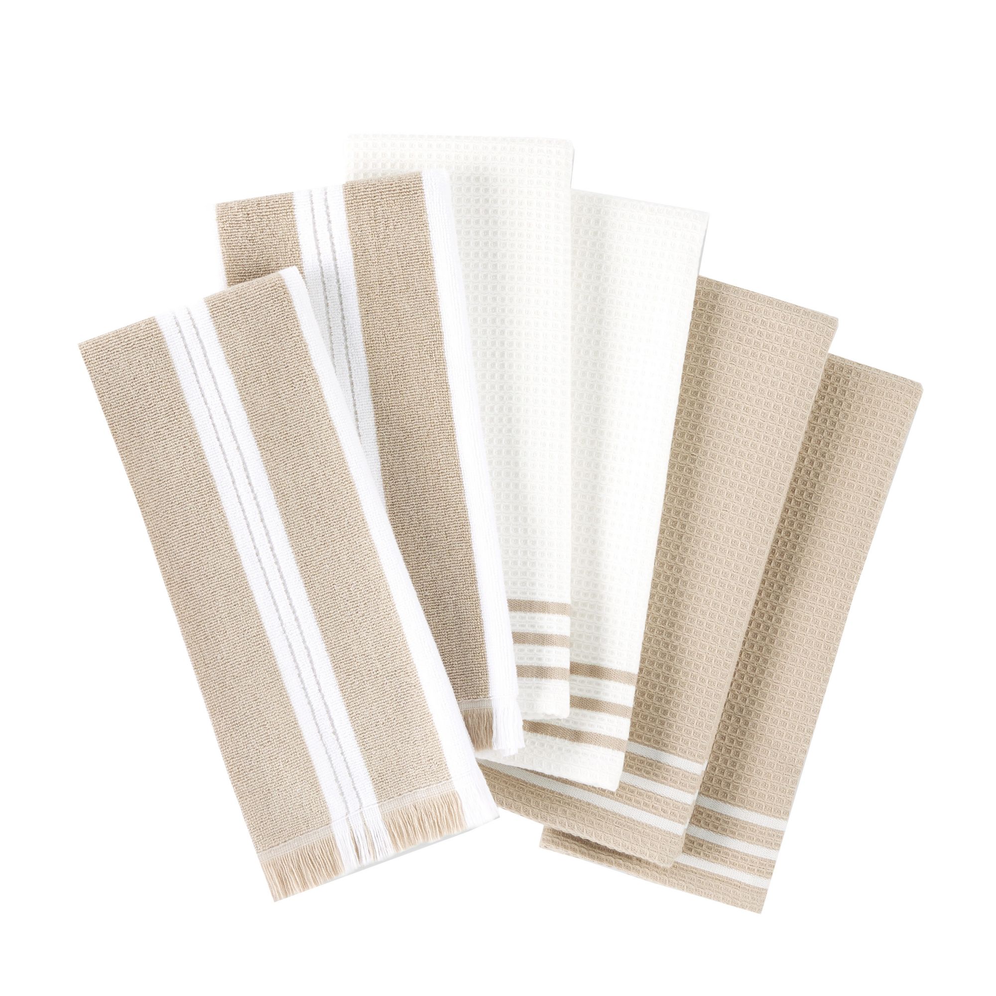Sur La Table17" x 28" Waffle Holiday Striped Kitchen Towels, 6 pk. - Beige/White