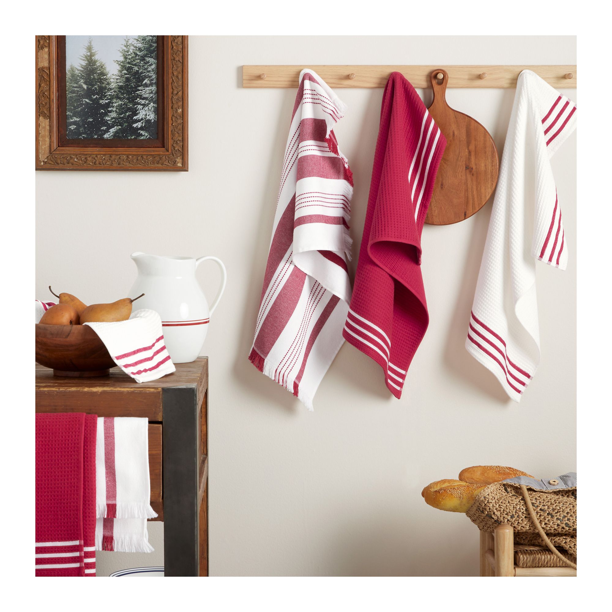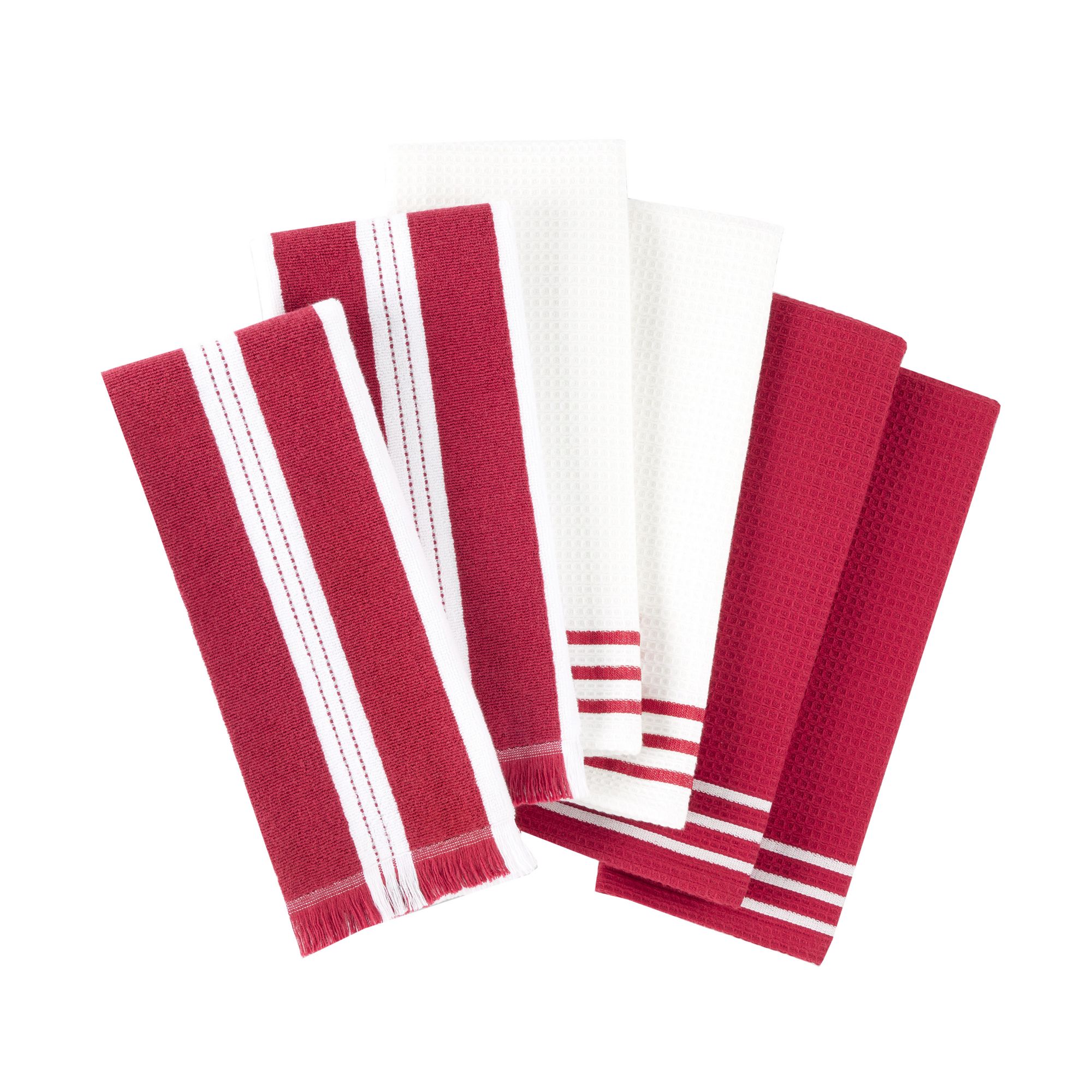 Sur La Table17" x 28" Waffle Holiday Striped Kitchen Towels, 6 pk. - Red/White